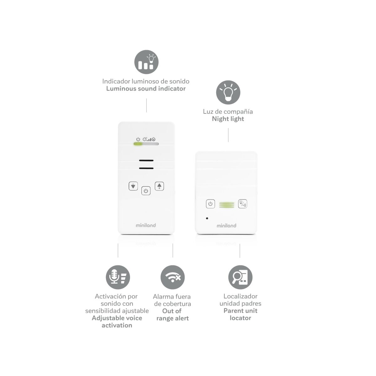 Die Audio-Babyphones von Miniland sind dank ihrer Qualität, ihrer einfachen Handhabung, ihres geringen Gewichts und ihrer Tragbarkeit eine ideale Alternative zu Video-Babyphones.