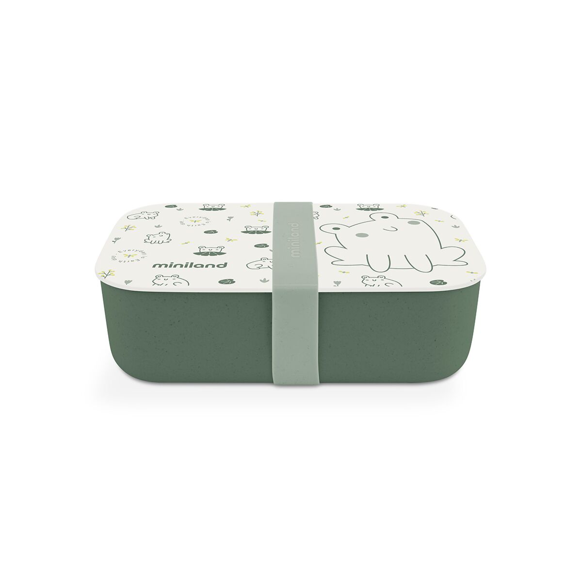 Lunchbox mit Froschmotiv für Babykost Diese Lunchbox ist aus biobasierten Materialien hergestellt (PLA) , sehr widerstandsfähig und langlebig und hat zwei verschiedene von der Natur inspirierte Motive (Frösche und Küken). Der Deckel ist mit einem Silikonband versehen, das für eine absolut luftdichte Abdichtung sorgt, um ein unerwünschtes Auslaufen zu verhindern. Außerdem verfügt die Box über einen abnehmbaren Unterteiler aus Silikon, um zwei verschiedene Lebensmittel getrennt voneinander mitnehmen zu können.