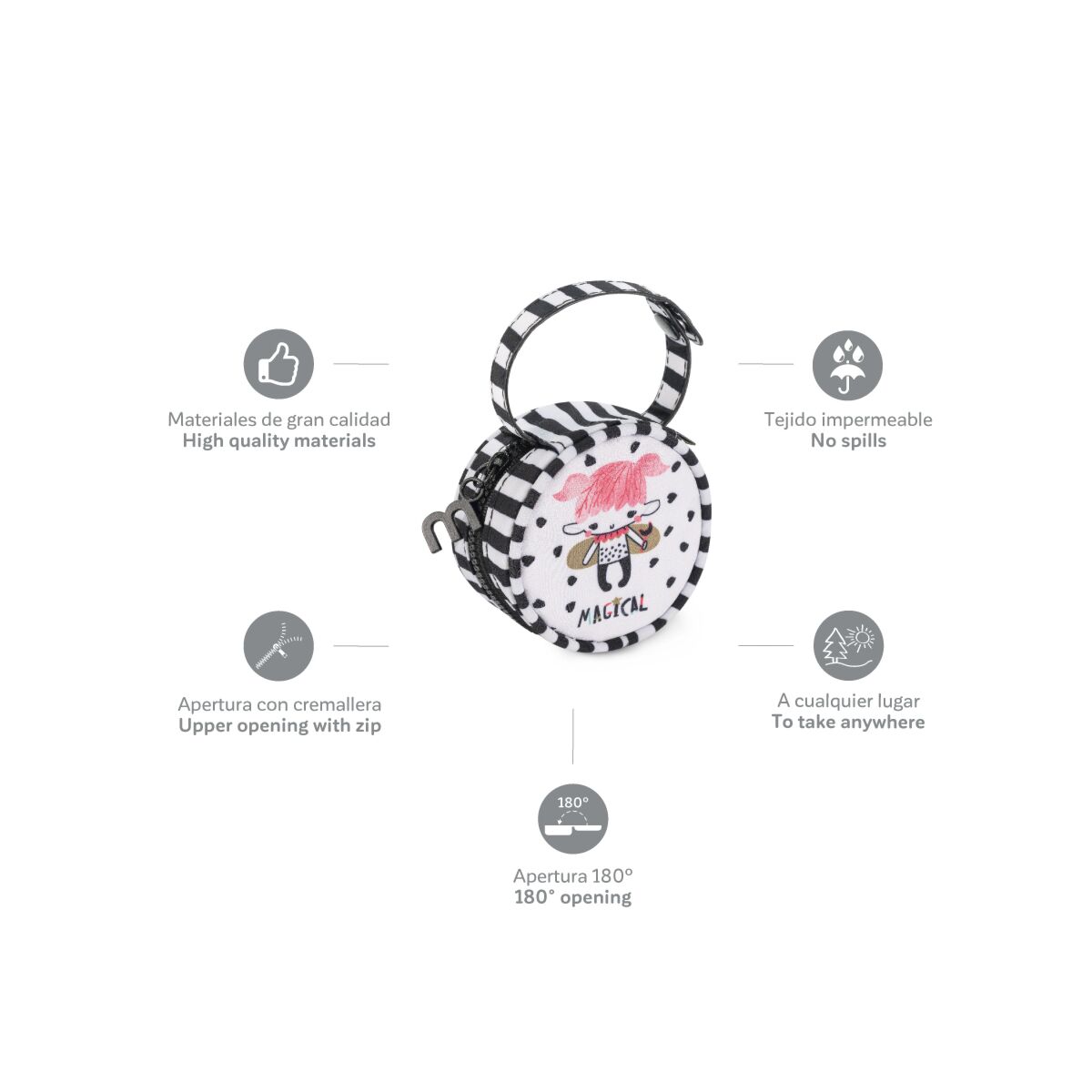 | Merkmale | Aus Materialien von bester Qualität in Spanien hergestelltAus Polypropylen von bester Qualität in unseren Anlagen hergestellt. Polypropylen ist eines der widerstandsfähigsten Materialien, und gewährleistet die Sicherheit und die Hygiene der Babynahrung.Immer saubere SchnullerIn diesem Behälter können die Schnuller des Babys sauber und hygienisch transportiert werden. Der Behälter hält sie von Verunreinigungen frei und schützt sie vor Kontact mit schmutzigen Gegenständen.Behälter mit flexiblem Henkel zum mitnehmenAm flexiblen Henkel kann der Behälter pacikeeper am Kinderwagen oder an der Babytasche aufgehängt und jederzeit ganz leicht wieder abgenommen werden.Bei Kindern sehr beliebtDer niedliche Bär wird Ihr Kind entzücken. entzücken und zu einem seiner Lieblingsbegleiter werden. Darüber hinaus erfüllt der Schnuller Behälter die Sicherheitsstandards für Spielzeug.Einfach zu reinigenDer Behälter braucht nur mit einem feuchten Lappen abgewischt zu werden und schon ist es wieder sauber. Es kann bei Bedarf jedoch auch im Geschirrspüler gereinigt werden.Phtalatfrei100% phtalatfrei. |