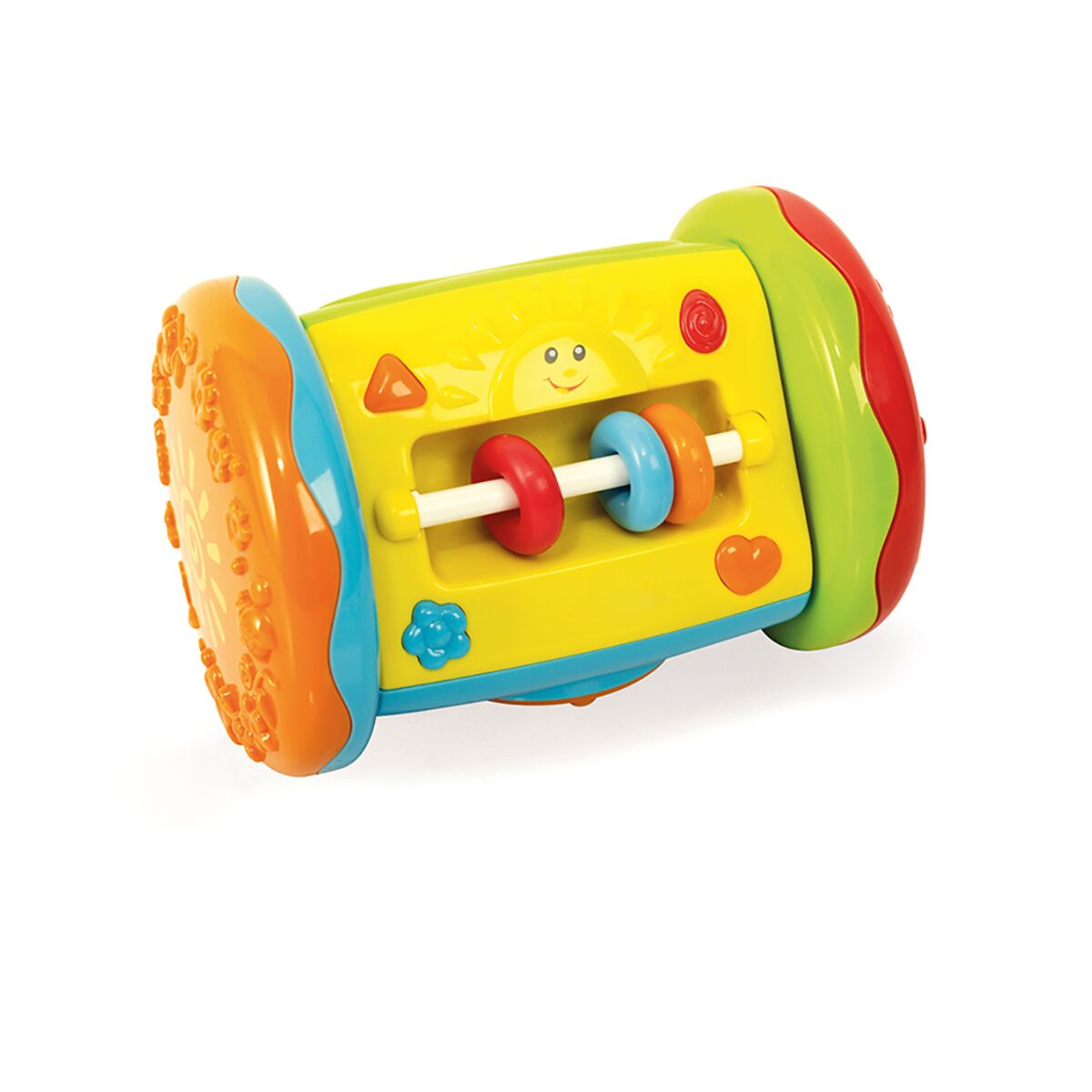 safety mirror and a revolving musical spring. This activity roller will prompt the boy/girl to crawl and move and it is an exercise toy which promotes general motor control. It is also a good toy for helping to practising handling. Its rounded forms contain various surprises like a mirror, a rings game and a revolving musical spring. It does not require batteries. Safety mirror and a revolving musical spring.