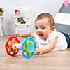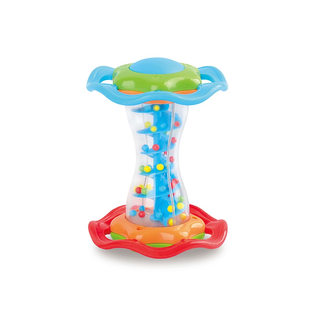 A roller with a built-in "rain stick" that favors general motricity. As it is rolled and rolled on the ground, it stimulates crawling and displacement. With soft silent rolling parts.