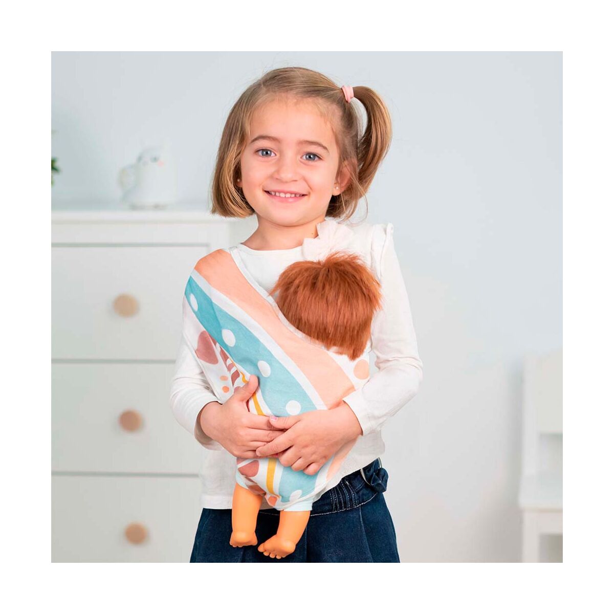 Scarf sling for carrying baby dolls, for Miniland Dolls. With this scarf sling, children can carry their dolls, just like in real life.