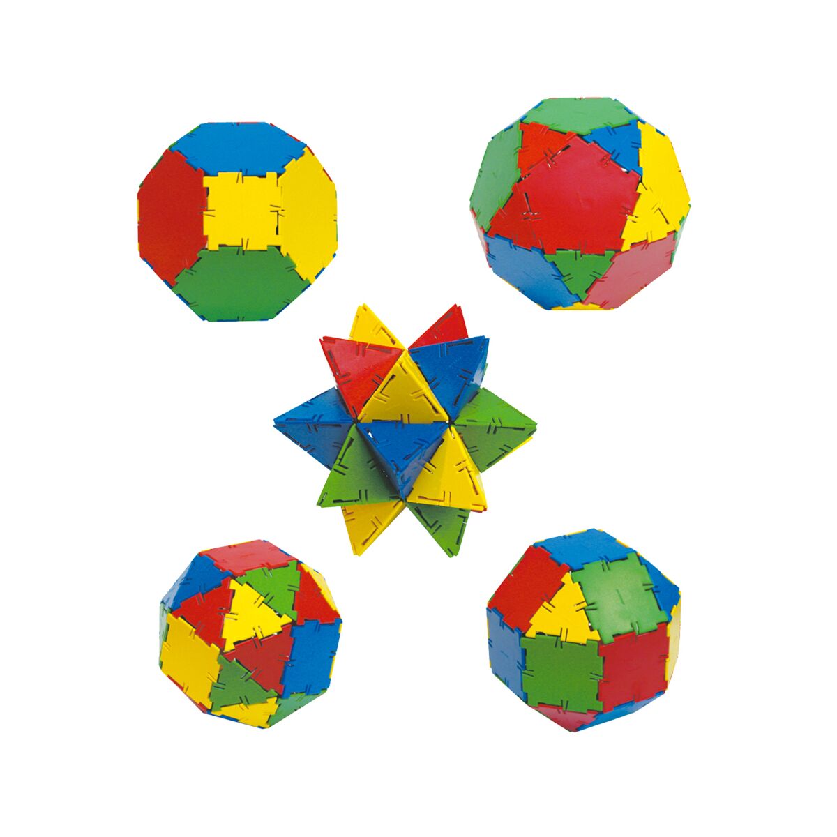 An infinity of 3 dimensional polyhedrons and volumetrically made shapes can be built from 2 polygons. Interesting and detailed guides for experiments and verification. An excellent way of combining play with didactic activities.