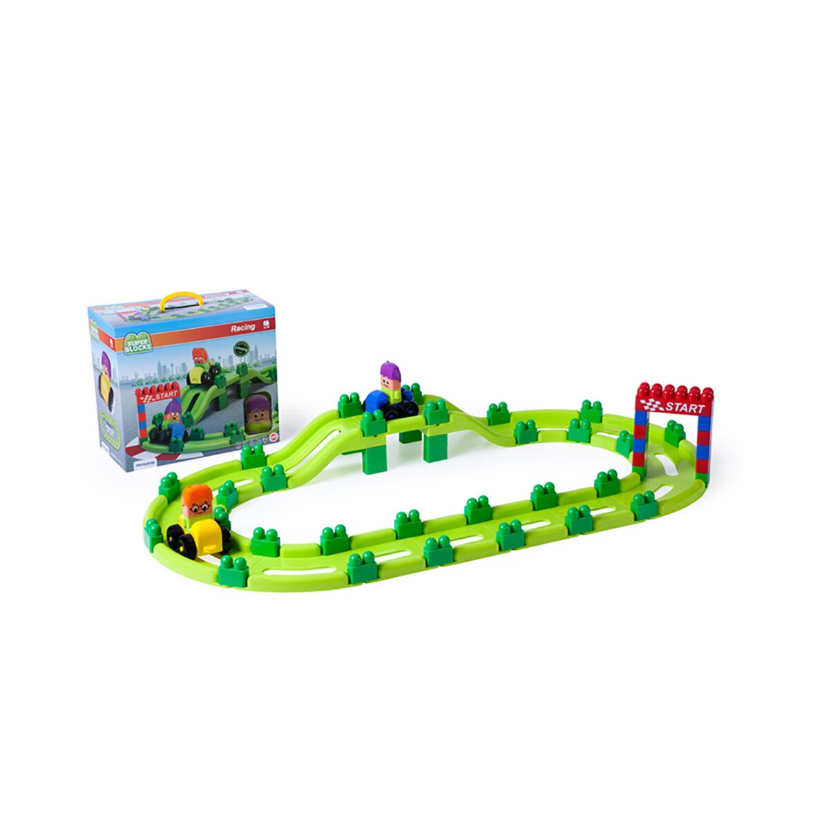 The most complete game in the collection. An explosion of speed and possibilities with tracks, ramps, cars, trees and countless adventures and races for kids. The size of the pieces and their ease of use make “Racing” the most complete and highly acclaimed item in the Super Blocks collection.