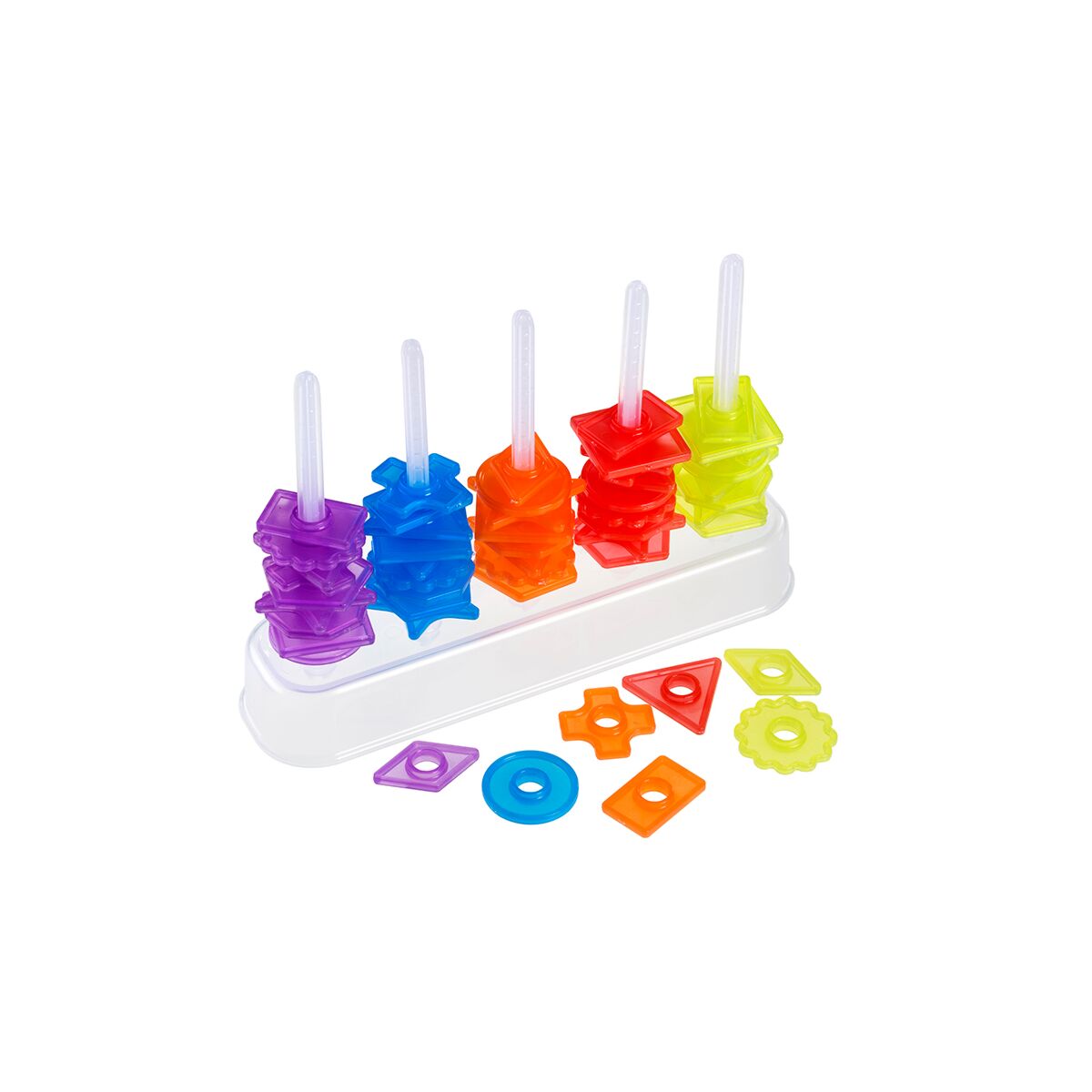This translucent plastic abacus has a 5 column base and 50 pieces in different colors and shapes. A Fun and useful material, it provides hands-on learning that works on children’s classification and serialization skills. It comes with transparent activity sheets with increasing difficulty levels, which can be used on light tables. This abacus helps children acquire basic mathematical knowledge and boost their ability to focus and concentrate, while they have fun.