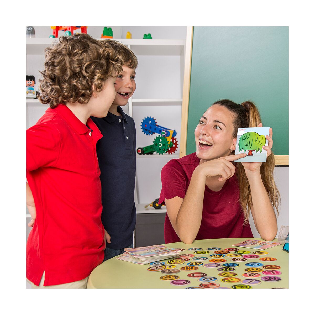 1 monstruo zampa-letras, 48 discos de letras, 30 tarjetas de juego, 1 bolsa de guardado y 1 guía didáctica