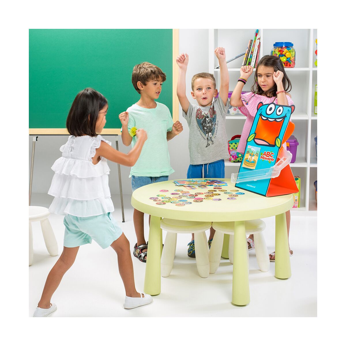 ¡Apunta, lanza y forma palabras!. Divertidísimo juego en el que "alimentar" al monstruo con letras. Los discos son letras que una vez dentro de la boca, deslizan por un canal y se colocan ordenadas formando las palabras deseadas. Juego Activo para aprendizajes de lecto-escritura. Varias modalidades de juego.