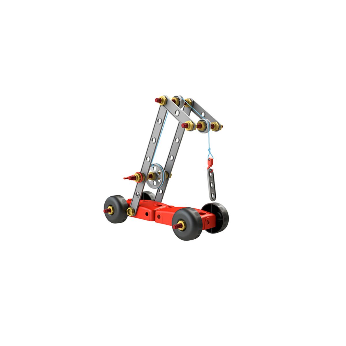 Completamente renovado, el juego de “primeras ingenierías” con nuevos elementos y nuevo diseño. Provisto de variedad de elementos de montaje, incluyendo además llave inglesa, tornillos, tuercas, poleas, etc. Las fichas-modelo que incluye el set son de gran tamaño y se detallan en pasos progresivos, favoreciendo la atención y el razonamiento. Estos razonamientos sientan la base para empezar a realizar montajes más complejos desarrollando la creatividad.