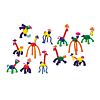 Cuerpos, cabezas, patas, colas y crestas para montar los animales más simpáticos y extravagantes. Fácil sistema de anclaje, a modo de rótulas. Favorece la imaginación y la destreza manual.