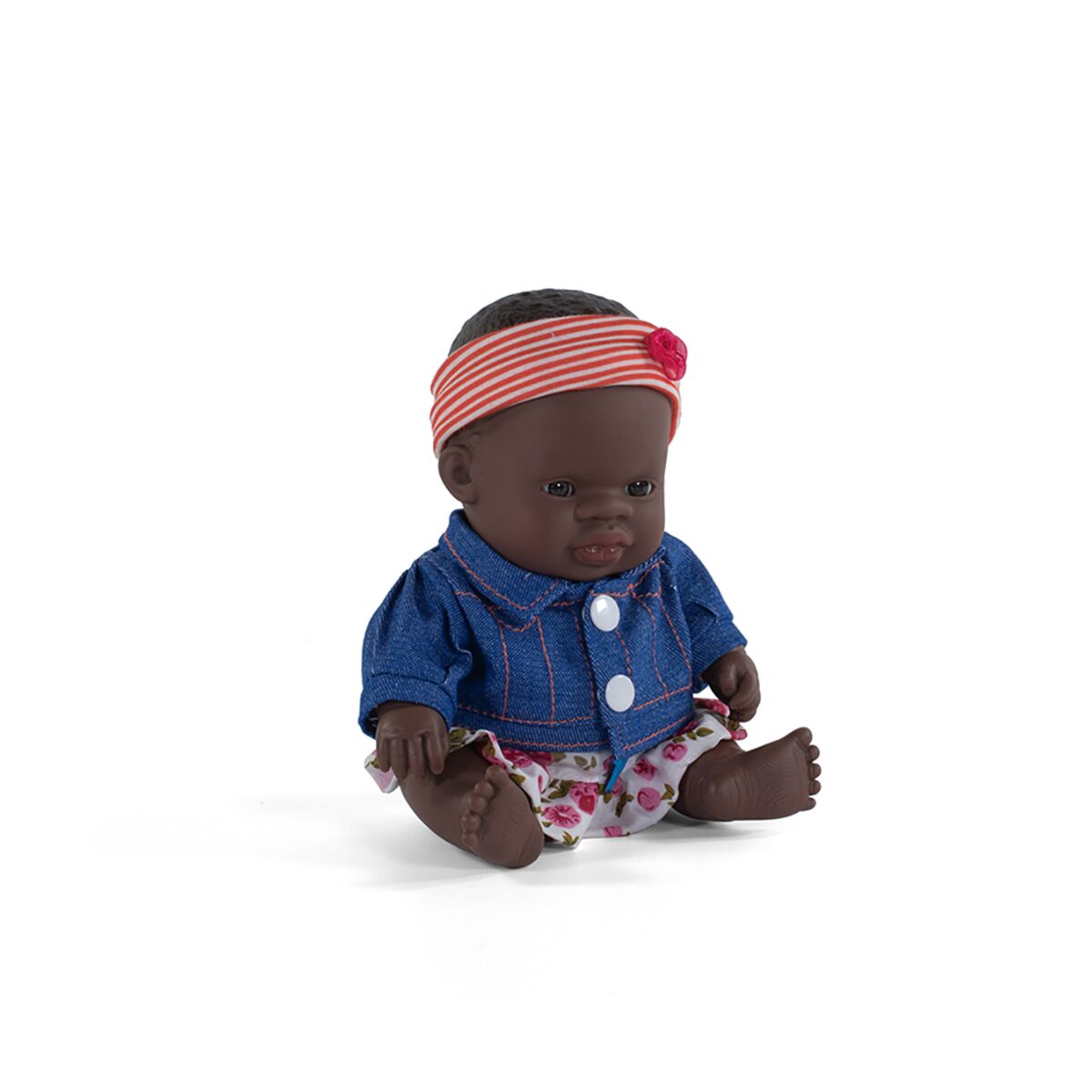 Descubre a la adorable muñeca de origen africano, con pelo corto rizado y ojos marrones, que forma parte de la diversa e inclusiva colección Miniland Dolls. Con una altura de 21 cm, esta muñeca está fabricada artesanalmente en España con un suave vinilo que tiene un dulce aroma a vainilla. Nos enorgullece representar la diversidad en nuestros muñecos para que todos los niños puedan sentirse identificados y representados en sus juegos. Esta muñeca africana es un reflejo de nuestra dedicación a la inclusión y al respeto mutuo. Además es articulada: ¡los peques pueden sentarla, acostarla y crear infinitas historias llenas de imaginación! La muñeca se envía en una bolsita transparente individual, lista para comenzar a disfrutar de la diversión y la creatividad. Te invitamos a explorar nuestra página, donde encontrarás una amplia selección de prendas y accesorios para personalizar aún más su estilo. ¡Deja volar la imaginación y crea inolvidables momentos de juego con nuestra muñeca africana de Miniland!