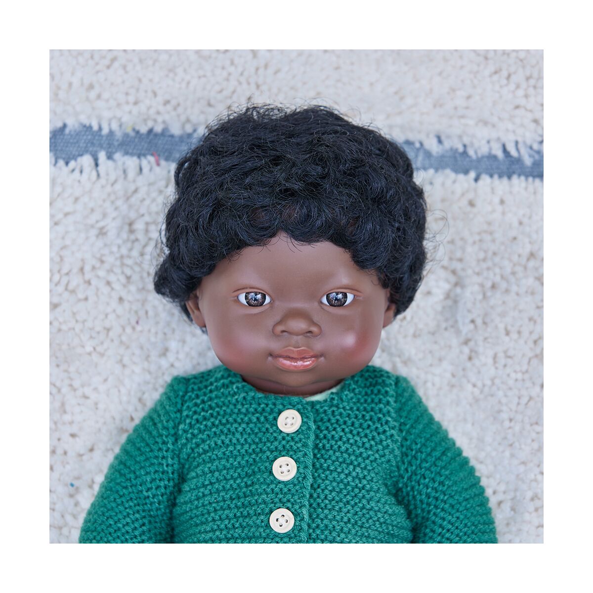 Hacer de nuestro entorno un lugar mejor para todos es nuestro propósito. Con nuestra colección Miniland Dolls, los niños aprenden valores como la diversidad, el respeto y la tolerancia hacia las personas de nuestro entorno, sin importar su condición, origen o género. El muñeco de 38 cm tiene origen africano, pelo rizado y está fabricado artesanalmente en España a base de vinilo, que además, ¡tiene un aroma a vainilla que les encanta! Se presenta en una bolsa individual transparente, sin ropita.