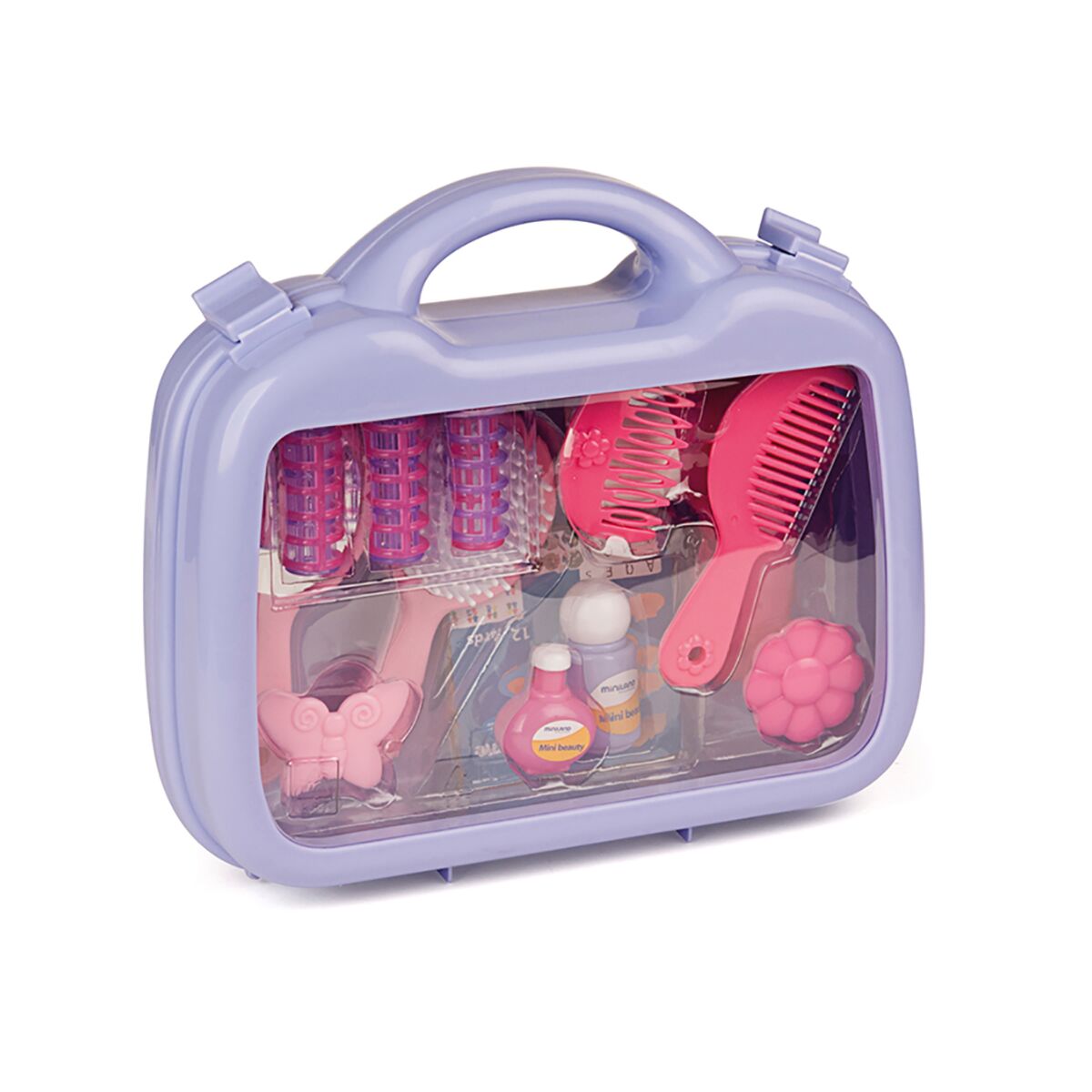 Maletín que incluye 12 accesorios de belleza relacionados con los cuidados del cabello.