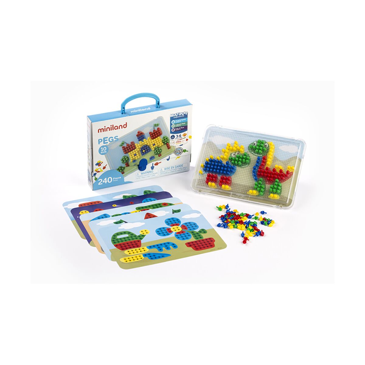 Descubre nuestra colección de Pegs en tamaño de 10 mm, con vibrantes colores primarios. Este juego clásico de mosaicos es una excelente herramienta para desarrollar habilidades como la concentración, la coordinación viso-motora y la creatividad. Además, ayuda a mejorar la orientación espacial y la capacidad de discriminación de colores. Con nuestra plataforma educativa miniland teach&play, podrás acceder a una amplia variedad de recursos y juegos gratuitos que enriquecen la experiencia de aprendizaje. ¡No te pierdas la bandeja con 240 Pegs y las 6 fichas de cartón incluidas para horas de diversión educativa!