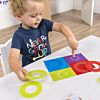 Composée de 16 cerceaux translucides de différentes couleurs, tailles et textures, ainsi que de quatre cartes d'activités thématiques avec différents niveaux de difficulté, cette ressource permet aux enfants de développer la différenciation visuelle de manière progressive et ludique.