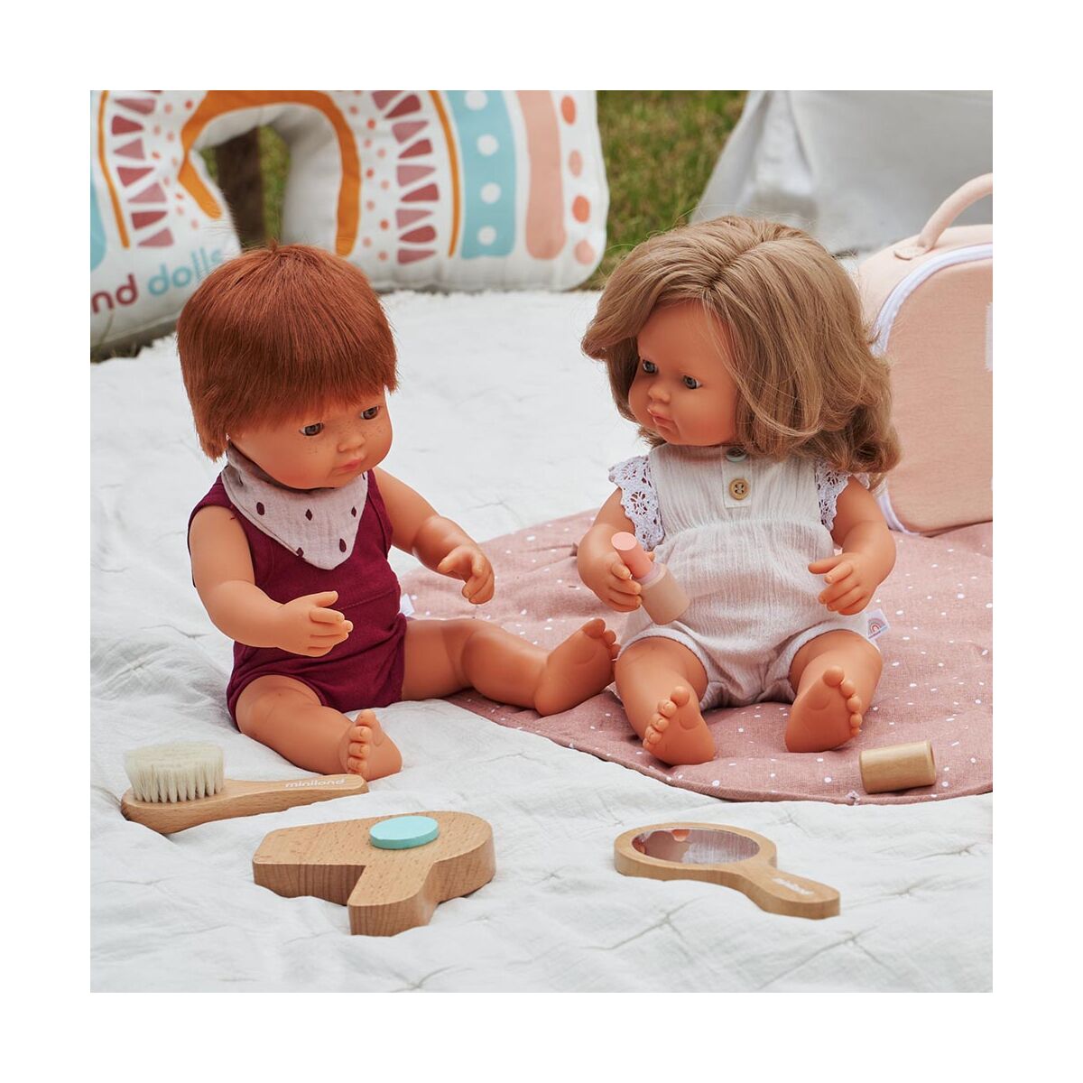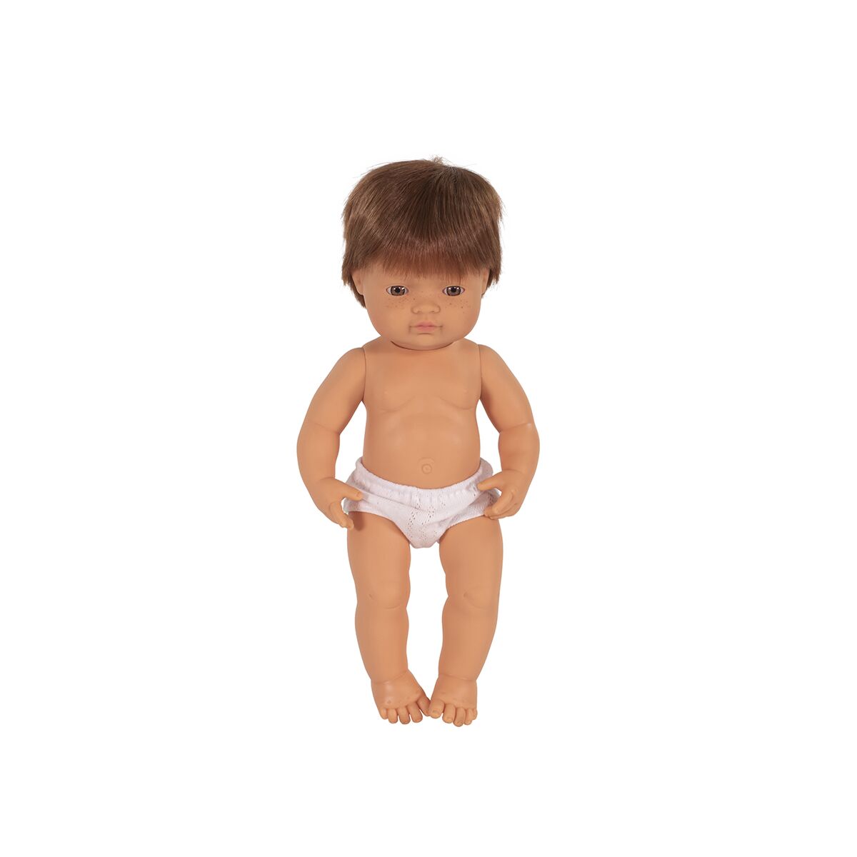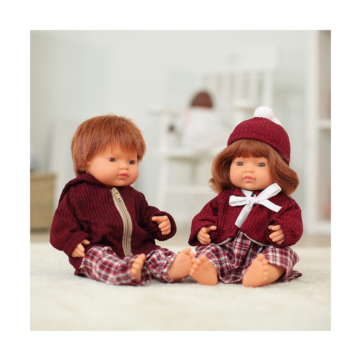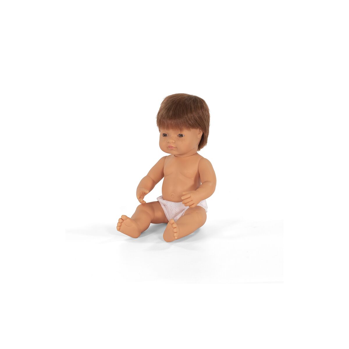 Miniland doll with the Caucasian characteristics of red hair and brown eyes. This doll belongs to our Miniland Dolls collection that promotes the value of equality within kids regardless of their race, gender or condition and allows them to also learn about the diversity in all of us and how to develop social skills such as empathy and tolerance.Made of high-quality soft vinyl with a light vanilla scent. This doll is also recyclableMade in SpainAnatomically correct doll with realistic differences between boy and girl dollsArticulated head, arms and legs that can fully rotate allowing the doll to sit, stand or lie downDoll is washable and it will not affect their quality and durabilityIt is 15 inches longCan be dressed with our Miniland’s clothing collection to complete its lookComes individually packaged in a polybag with underwear