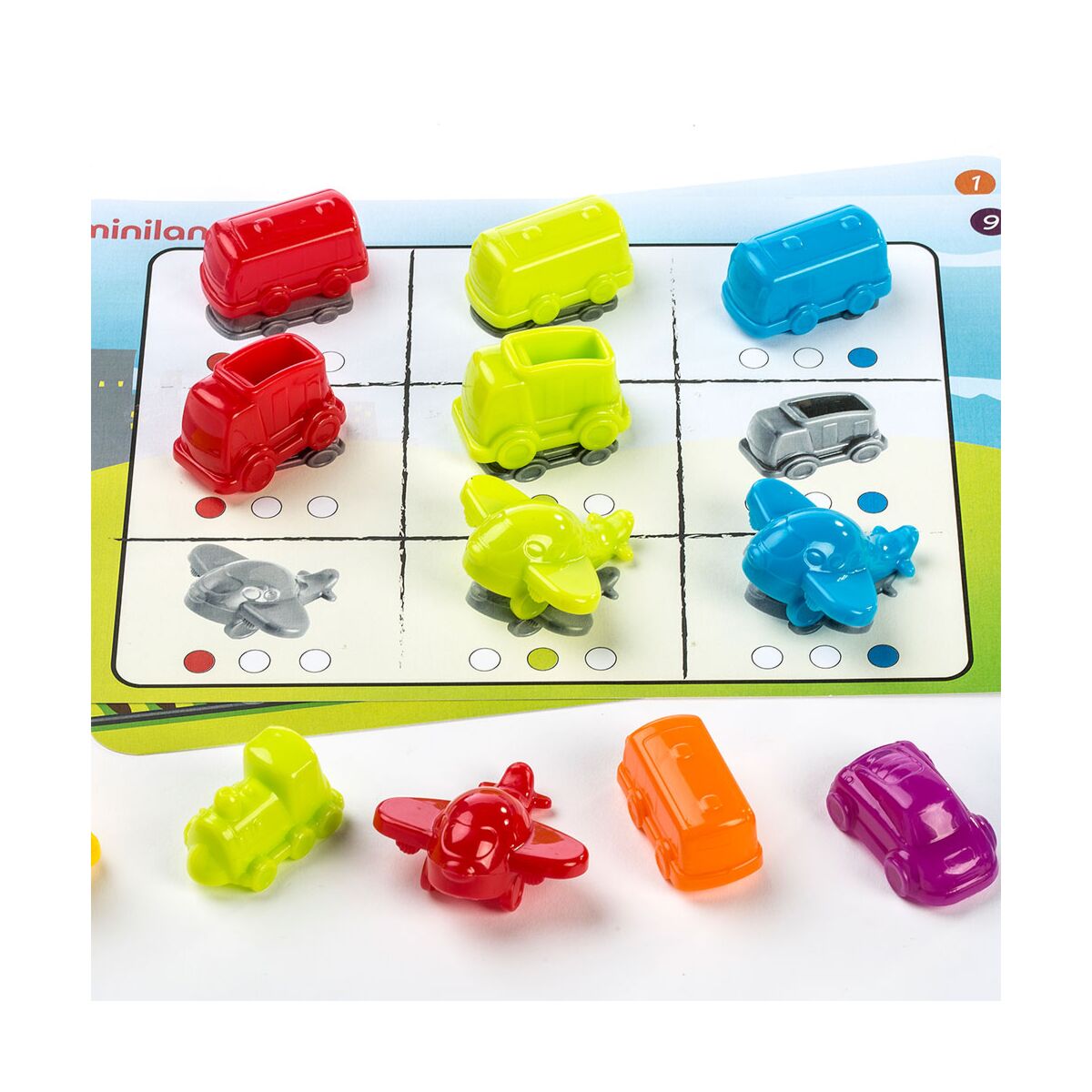 An attractive vehicles game designed to enable children to familiarize themselves with the first notions of mathematical logic through handling and the game.