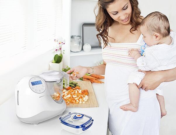 Observando todos estas ventajas comprobamos que cocinando al vapor el bebé absorbe mejor las propiedades de los alimentos favoreciendo de manera positiva en su crecimiento. Para facilitar a los padres la tarea de preparar la comida de sus hijos al vapor, Miniland ha creado Chefy 5, un robot de cocina muy fácil de usar que tiene 5 funciones :