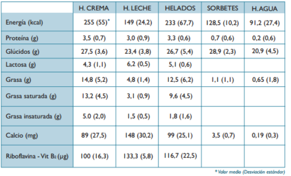 Composición Nutritiva de los helados
