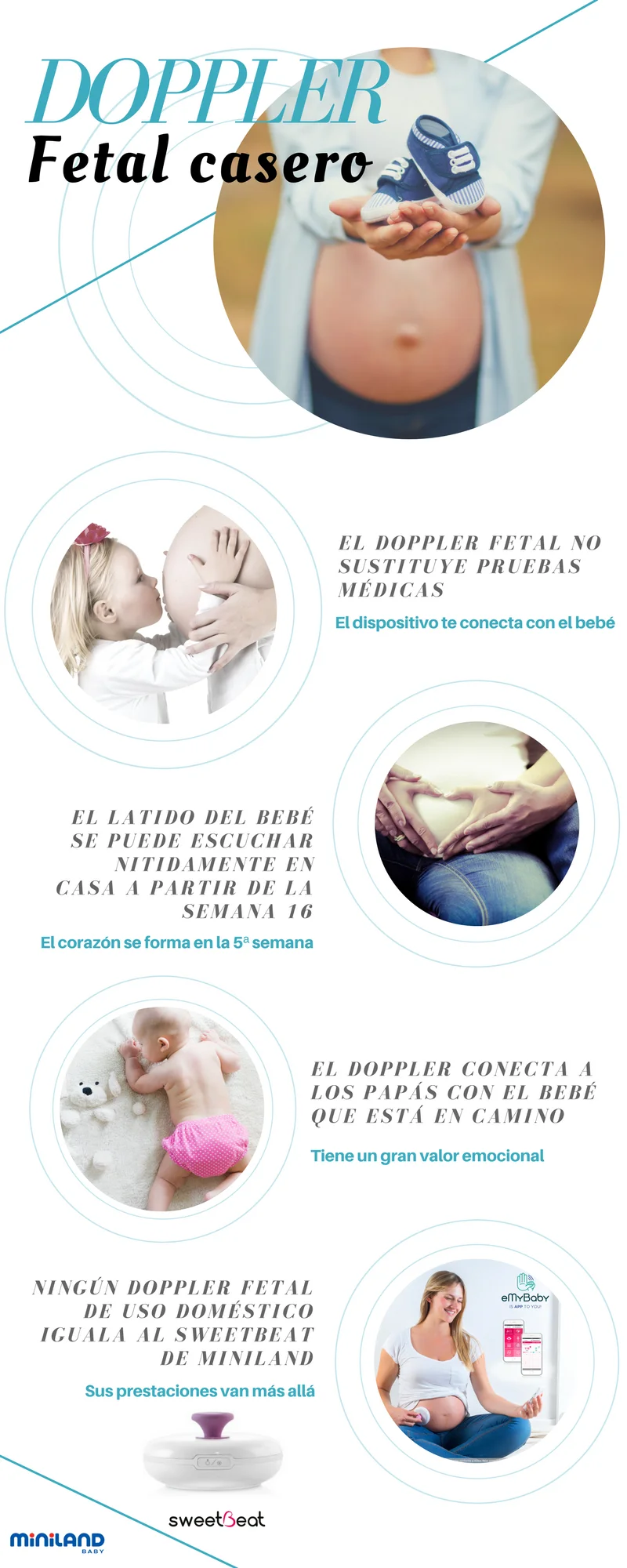 Miniland, en su afán por innovar y crear productos de puericultura únicos, ha ideado un doppler fetal con gran valor añadido. Este dispositivo, el conocido SweetBeat, gracias al módulo de embarazo de la aplicación eMyBaby, incorpora entre otras cosas una herramienta de gestión de control del embarazo. Sweet Beat ha llegado para revolucionar la vida de los futuros papás.