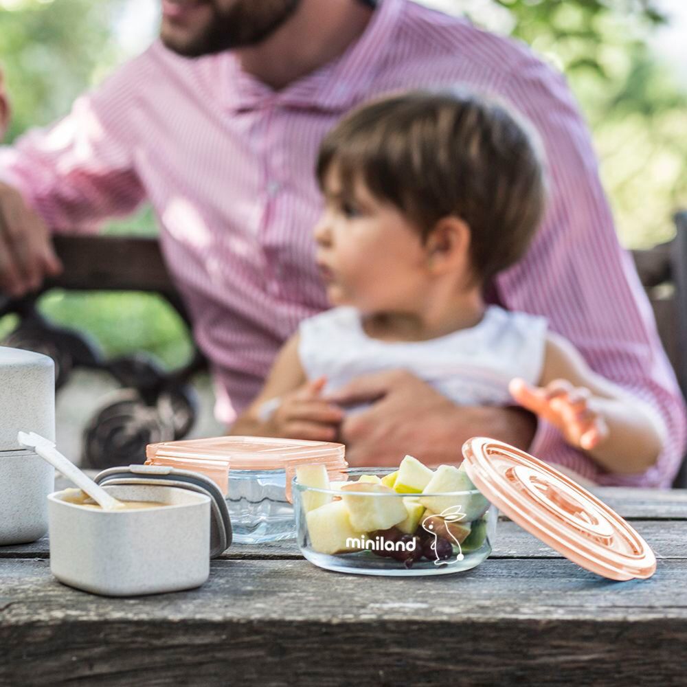 Herméticos para comida con bolsa de transporte: Nuestros conjuntos de bolsa isotérmica tematizada y set de 2 contenedores de vidrio cuadrados/redondos de la colección eco-friendly, con capacidad de 160ml y cierre hermético son muy prácticos para salir con el peque de paseo y llevar su comida siempre lista. Se convertirá en un imprescindible en menos que os déis cuenta.