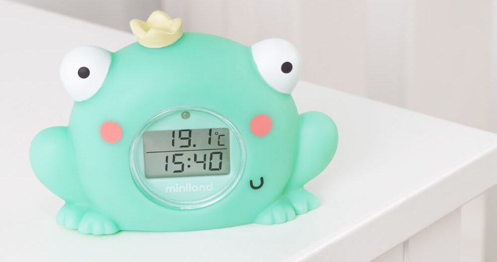 Termómetro de baño: Thermo Bath de la colección Magical de Miniland permite controlar fácilmente y en cualquier momento tanto la temperatura del agua del baño como la ambiental ya que las mide forma constante, reflejando en su pantalla las variaciones que se van produciendo. El bebé puede agarrarla e incluso sumergirla tranquilamente cuando se encuentra flotando ya que cumple con todos los estándares de seguridad del juguete.