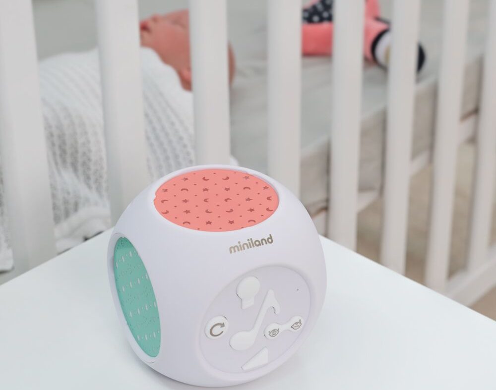 Proyectores musicales para dormir bebés: Dreamcube Magical es un completo proyector de descanso para bebés, con sonidos y melodías. Os ayudará a relajar y dormir al bebé gracias a la combinación de suaves luces y motivos que proyecta sobre el techo y sus dulces nanas y sonidos. Cuenta también con activación por sonido y permite configurar sus proyecciones y melodías al gusto de vuestro bebé.