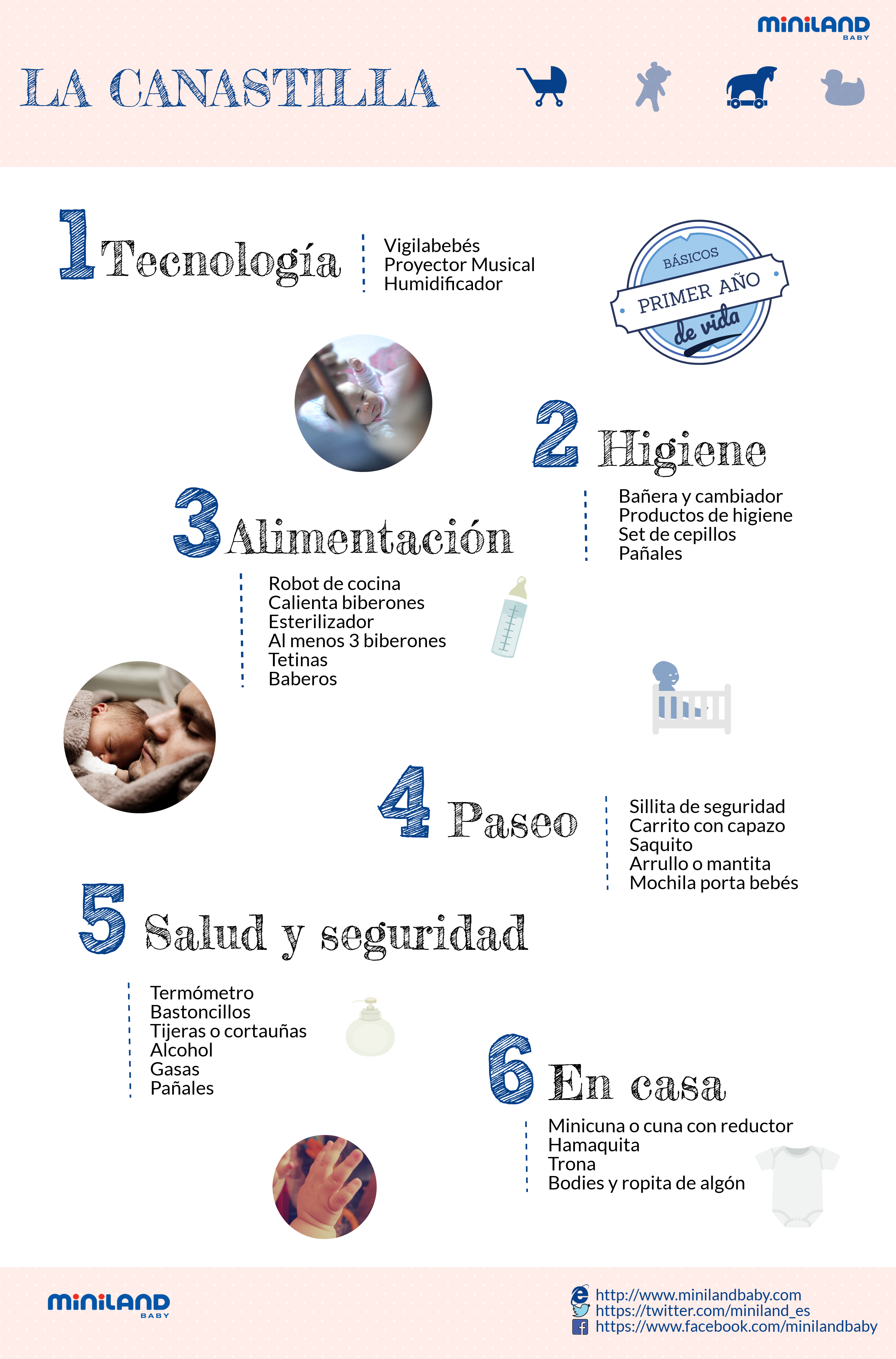 La canastilla es importante pero además el niño necesitará en sus primeros meses diversos artículos que tendremos que comprar o pedir prestados. Una buena idea es tener en previsión esos productos para que familiares o amigos nos los puedan regalar. Hoy explicamos qué objetos serán imprescindibles en el momento del nacimiento y hasta el año de vida de nuestro niño.