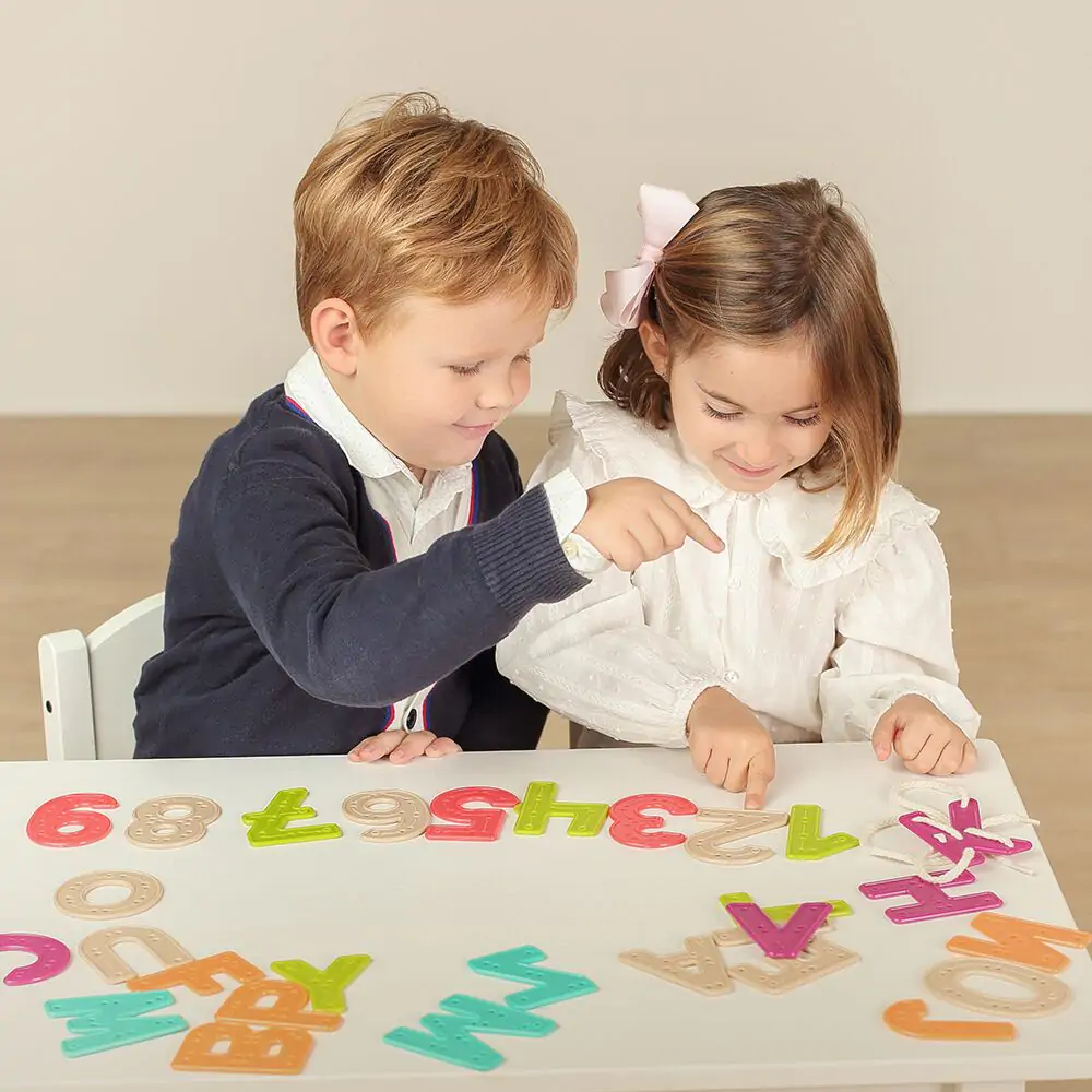 - ECO Activity 123 ABC El set de letras y números perfecto para enseñar a los niños sus trazos de una manera muy divertida. Además, cuenta con indicaciones que les guía para coser con un cordón a través de las piezas, lo que ayuda a favorecer su psicomotricidad fina.