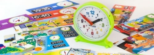 Este juego es perfecto para iniciar a los niños en la temática de las horas y el transcurso del tiempo. Está compuesto por un reloj de plástico con manecillas de colores y 12 fichas con distintas situaciones y franjas horarias. Con él puedes enseñar a tus alumnos las diferentes horas del día e, incluso, a distinguir entre a.m. y p.m. Es una actividad que puede dar mucho juego a tus clases, ya que puede convertirse en un recurso recurrente. Por ejemplo, puedes pedir que cada día sea un niño distinto el que, en un determinado momento de la clase, indique la hora que es a los demás, así todos participarán y día tras día irán familiarizándose con el tiempo.