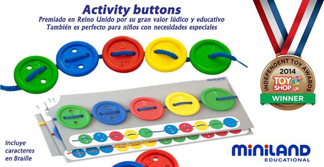 La entidad Toy Shop UK ha premiado a Activity buttons de Miniland Educational, un completo juego de seriación y clasificación que destaca por su alto valor educativo, la gran jugabilidad y diversión que aporta así como la capacidad para integrar en el juego a personas ciegas o con discapacidad visual.