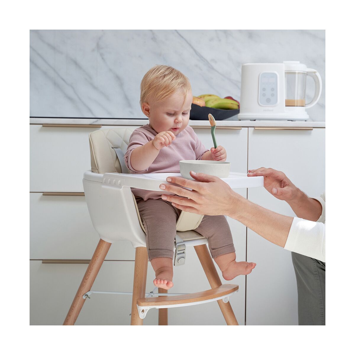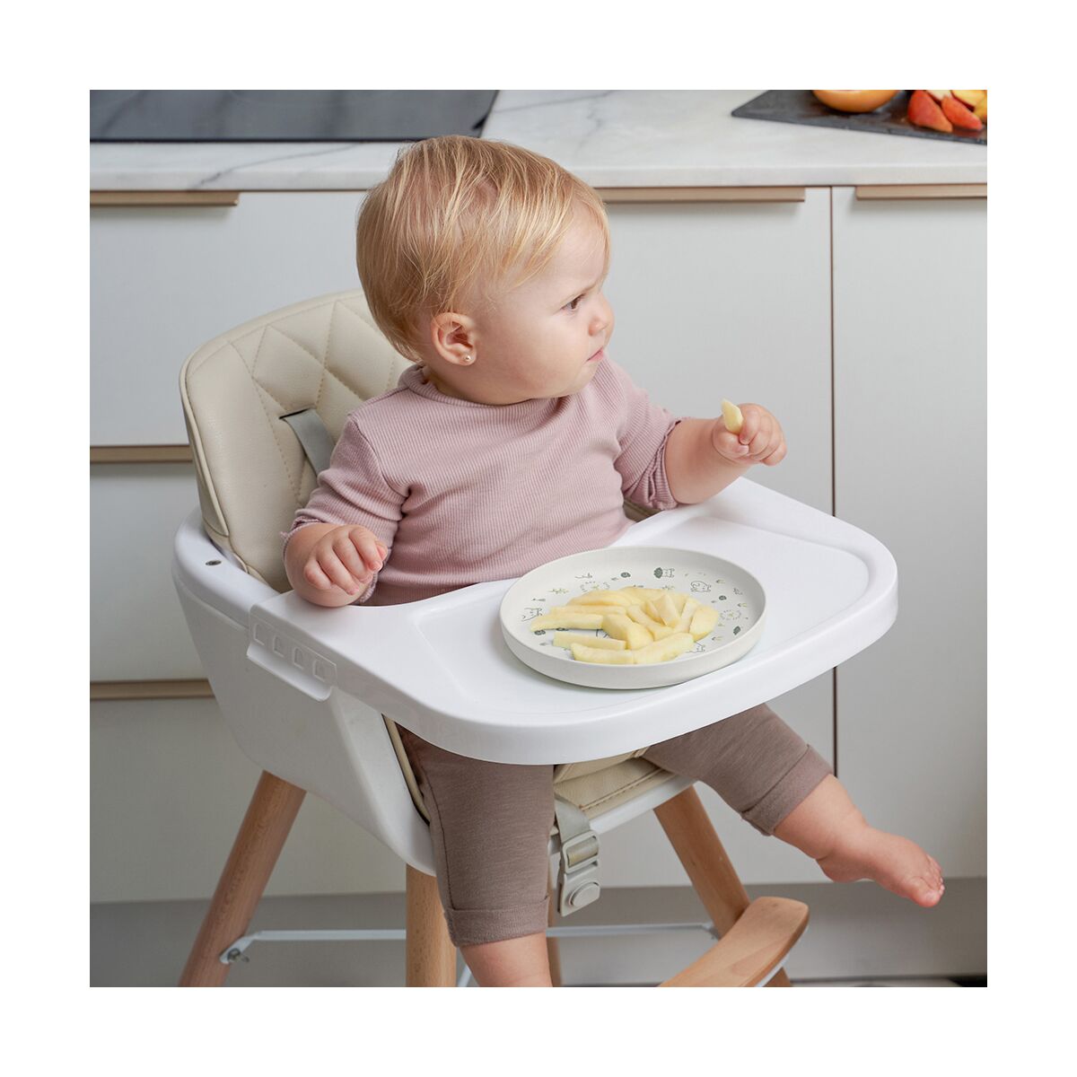 Viel Spaßfür die Kleinen! Mit diesem Geschirr mit fröhlichen Frosch- oder Kükenmotiven wird jede Mahlzeit zum reinen Spaß. Alles mit dabei in einem Geschirrset Das 5-teilige Set besteht aus einem flachen Teller für feste Nahrung, einer Schale, die sich ideal für Breie eignet, einer Gabel und einem Löffel in der idealen Größe für die ersten Mahlzeiten des Babys und einem Trinkbecher. Lernen selbständig zu essen Dank ihrer angemessen kompakten Größe helfen die Gabel und der Löffel den Kleinen zu lernen selbstständig zu essen. Außerdem lernen sie durch das Trinken aus ihrem kleinen, offenen Becher, diesen in der richtigen Position zu halten, ohne das Wasser zu verschütten. Alles lässt sich perfekt mit den anderen Teilen kombinieren, damit die Mahlzeiten Spaßmachen. Natürliche Materialien Hergestellt aus langlebigen Materialien 100% natürlichen Ursprungs, ist es ein sehr haltbares und leichtes Geschirr, das den Kleinen beibringt, wie wichtig es ist, auf die Umwelt zu achten und die Welt, in der sie aufwachsen werden, zu schützen. Spülmaschinenfest Alle in diesem Set enthaltenen Teile können bequem in der Spülmaschine gereinigt werden.