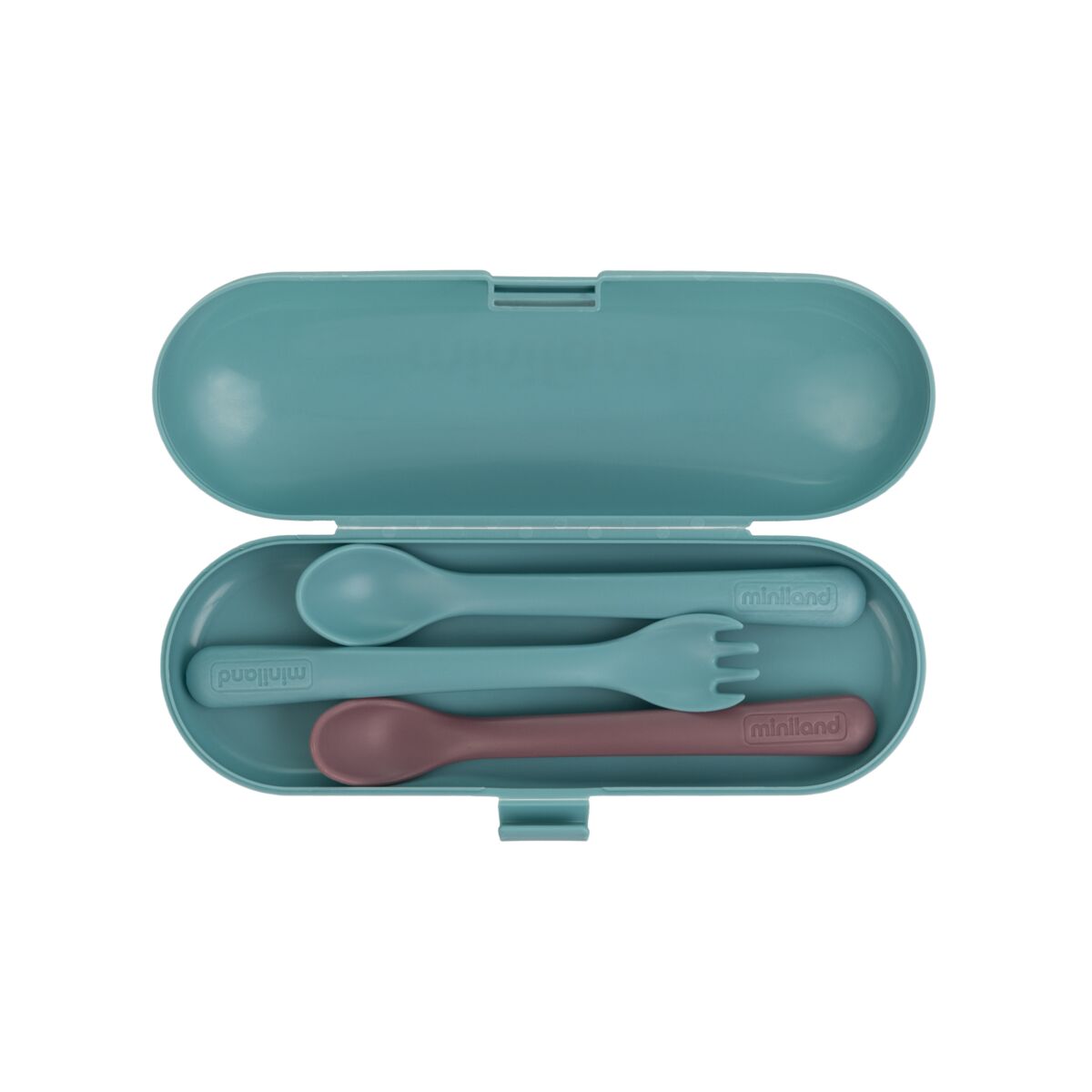 Dank des mit einem Sicherheitsverschluss versehenen Etuis können die Eltern das Besteck immer hygienisch verwahren. Dieses Etui erlaubt es ihnen außerdem, das Besteck ganz einfach und bequem überallhin mitzunehmen.