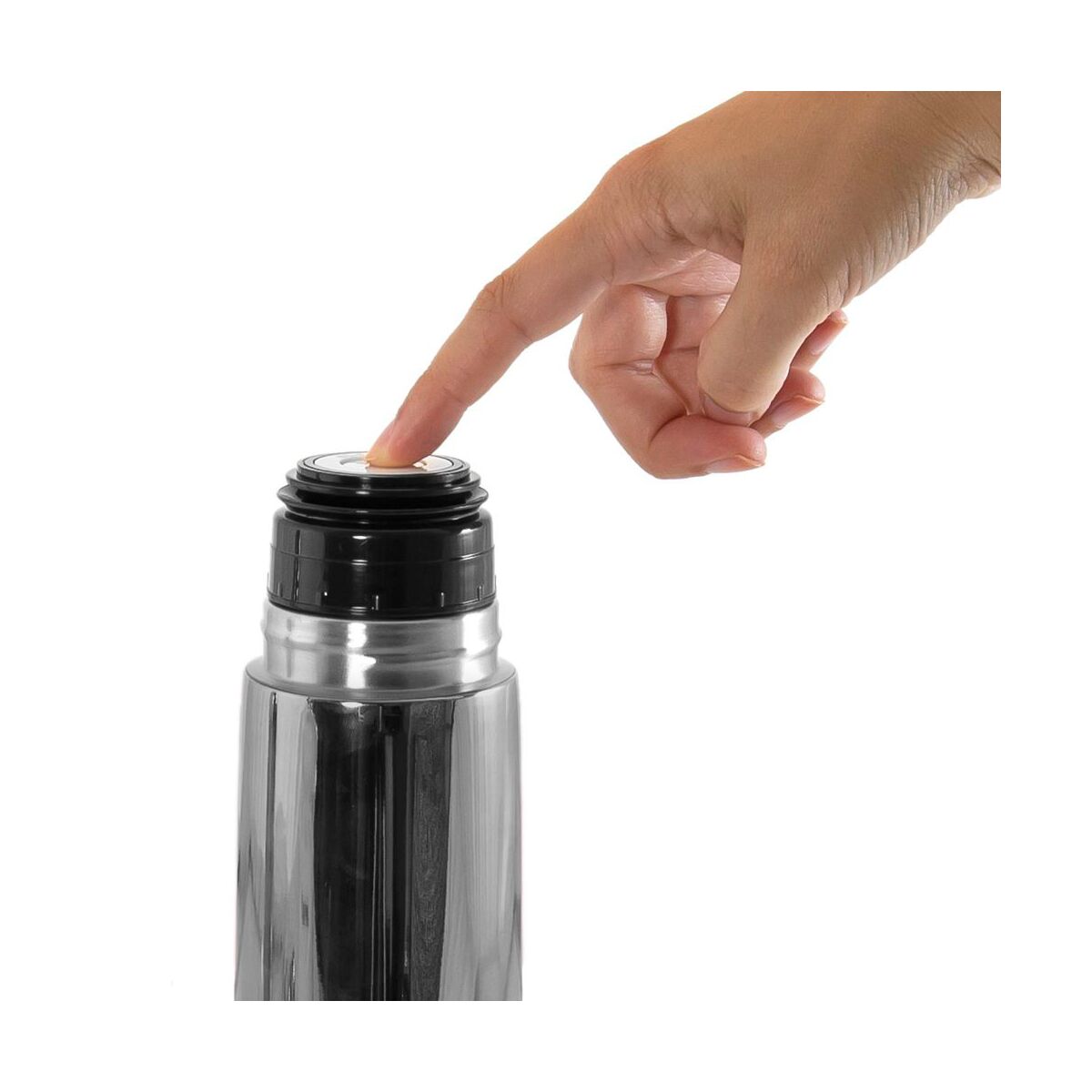 Dank ihres einfachenAusgießsystems und des Verschlusses auf Knopfdruck lassen sich dieThermobehalter der Serie thermys deluxe ganz leicht mit einem Finger offnen undschließen, ohne den Deckel abschrauben zu mussen.