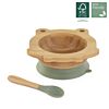 Diese Bambus-Schale mit Saugnapf, speziell für Babys entworfen, wird aus natürlichen, nachhaltigen Materialien wie FSC-zertifiziertem Holz und lebensmittelechtem Silikon hergestellt. Die Schale wird mit einem Löffel mit weichem Silikonaufsatz geliefert, der das Zahnfleisch Ihres Babys schont und es ihm ermöglicht, selbstständig zu essen. Dank des Saugnapfs an der Unterseite ist die Schale kippsicher und kann nicht herunterfallen, was sie zu einem idealen Geschirr für BLW macht.