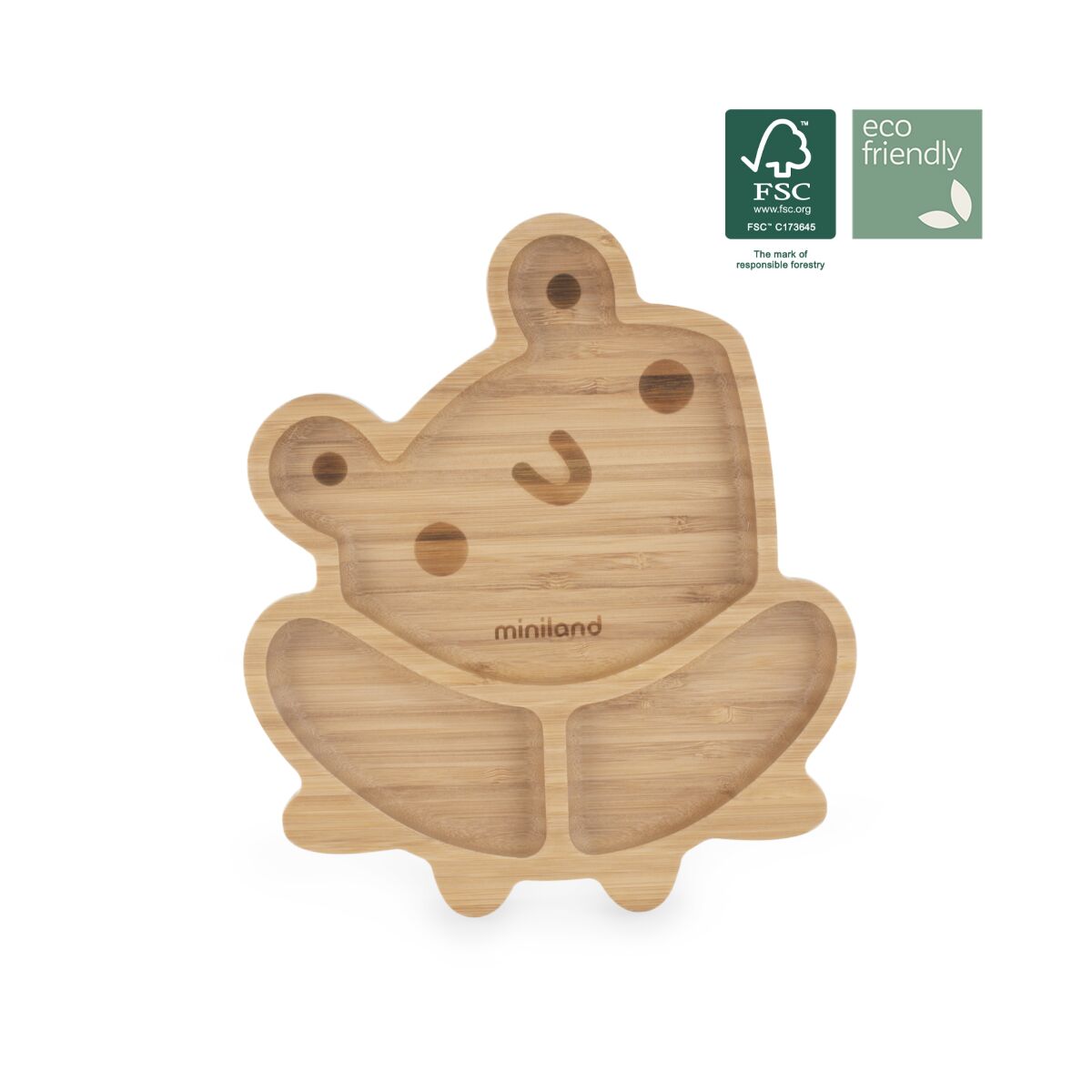 Wooden Plate Frog ist ein Teller mit Saugnapf und Fächern, damit Ihr Baby lernen kann, selbstständig zu essen. Ideal für die BLW-Methode. Dieser in Fächer unterteilte Teller aus 100% zertifiziertem Bambusholz (aus nachhaltiger Forstwirtschaft) hilft Ihrem Baby, beim Essen autonom zu werden. Der Teller ist mit einem kippsicheren Silikon-Saugnapf ausgestattet, der verhindert, dass Ihr Baby den Teller beim Essen umstößt.
