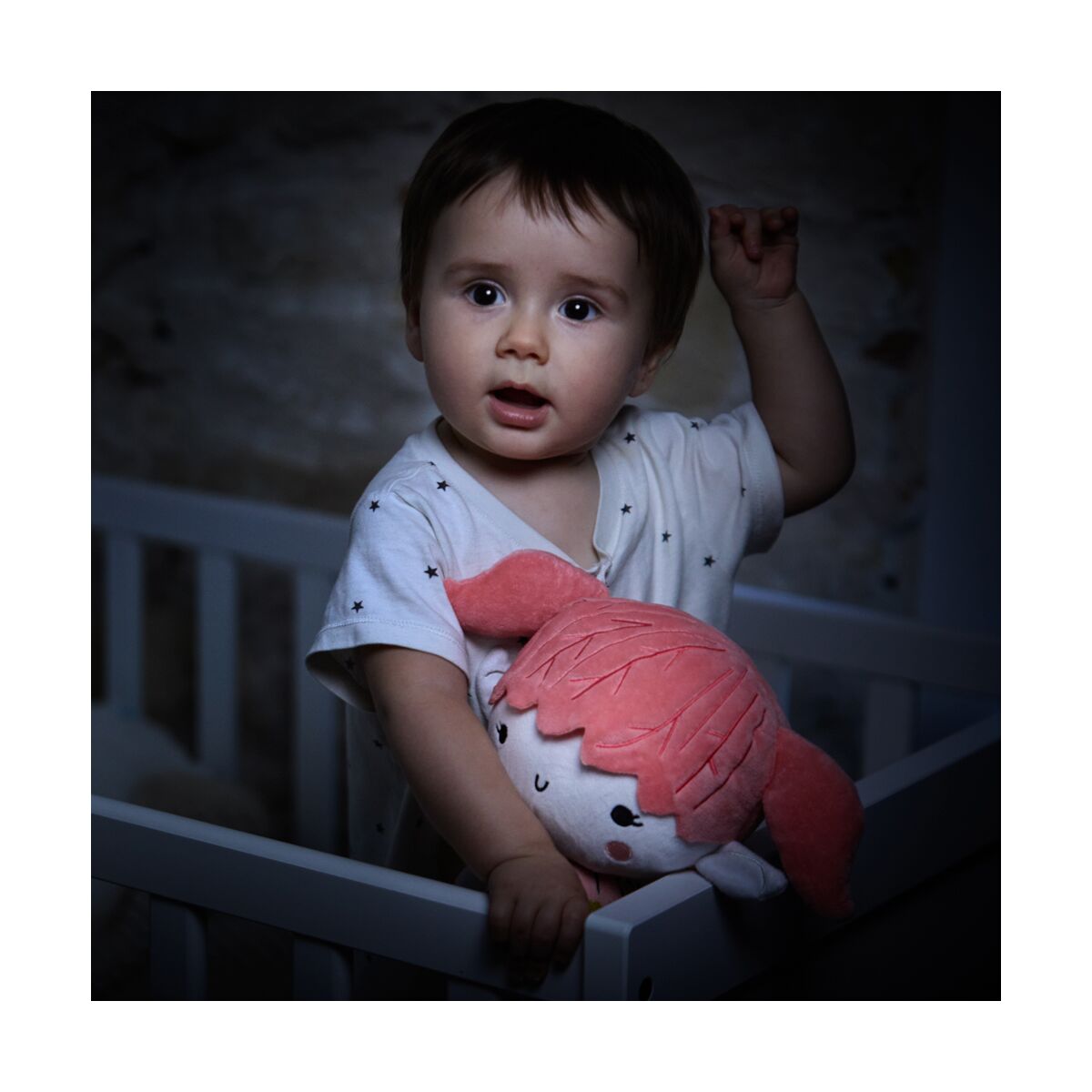 dreambuddy is an evolutionary doll. When the baby is very young, it can hang on a crib thanks to its contact sealing tape. Later on, it can constantly accompany the baby in the crib, in bed or wherever they sleep or go, day or night, as it is an ideal playmate.