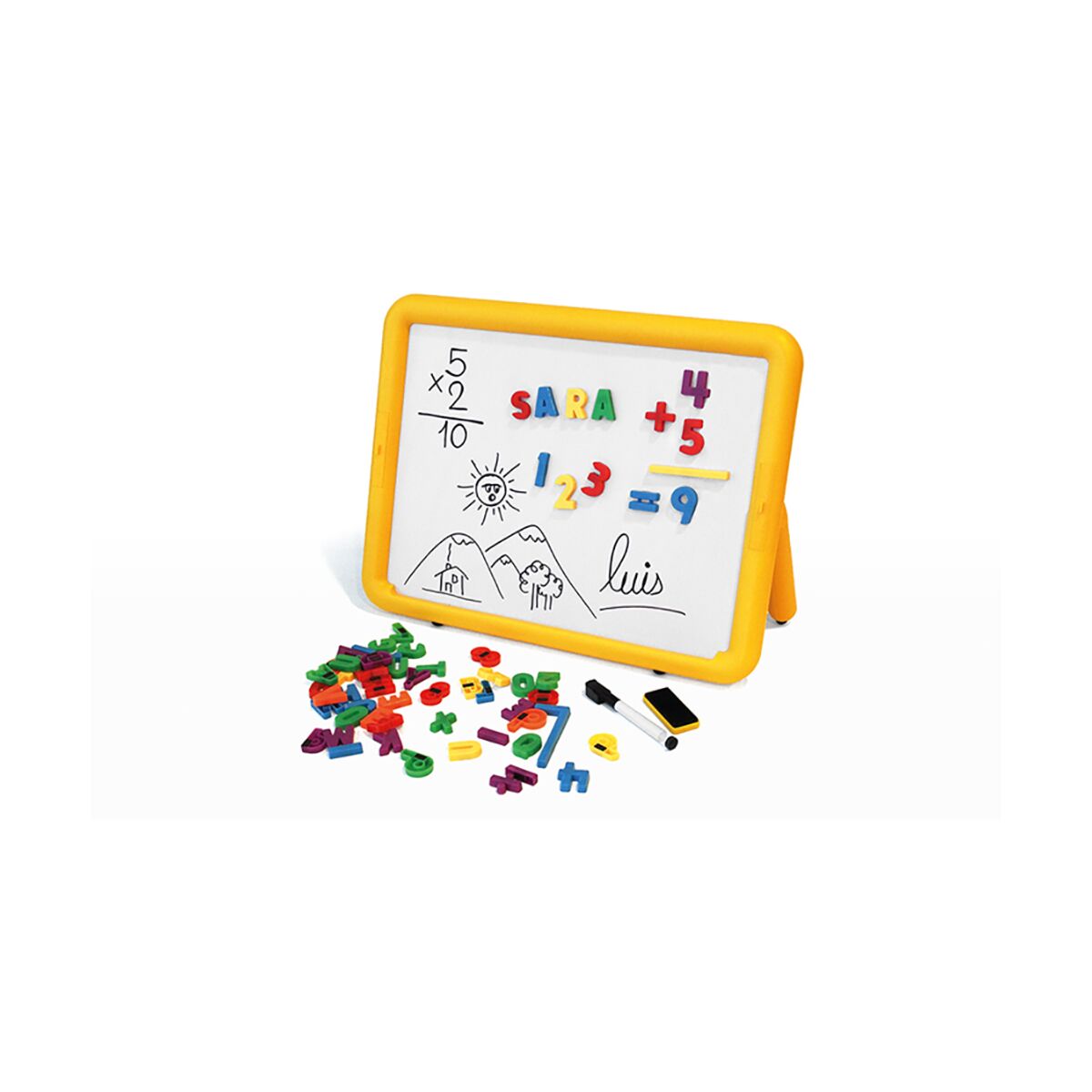Big size board. Children can write and draw on the white side with a felt pen or with chalks on the blue side. For use with the magnetic numbers and letters. The board should be cleaned with eraser included or with a cloth. Can be used in vertical or horizontal position.