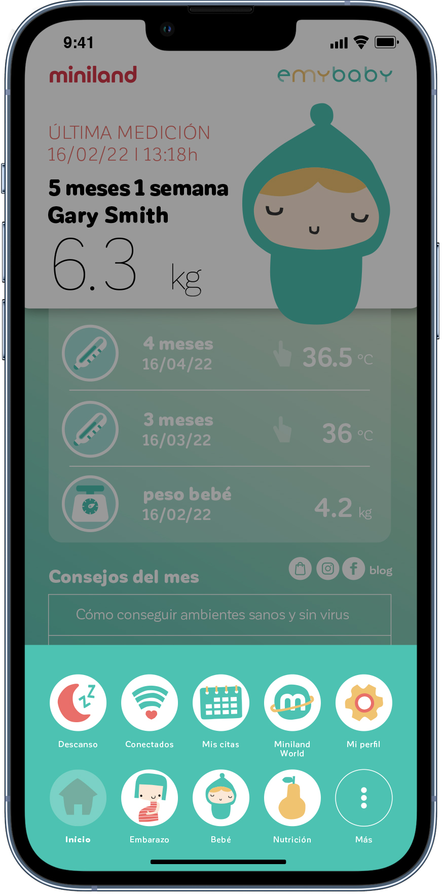 Miniland emybaby te acompañará desde el embarazo y luego en diversos aspectos esenciales de la puericultura. Conecta emybaby fácilmente con tus productos de Miniland.