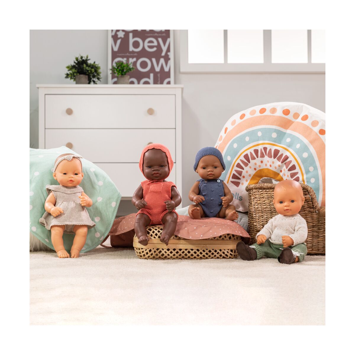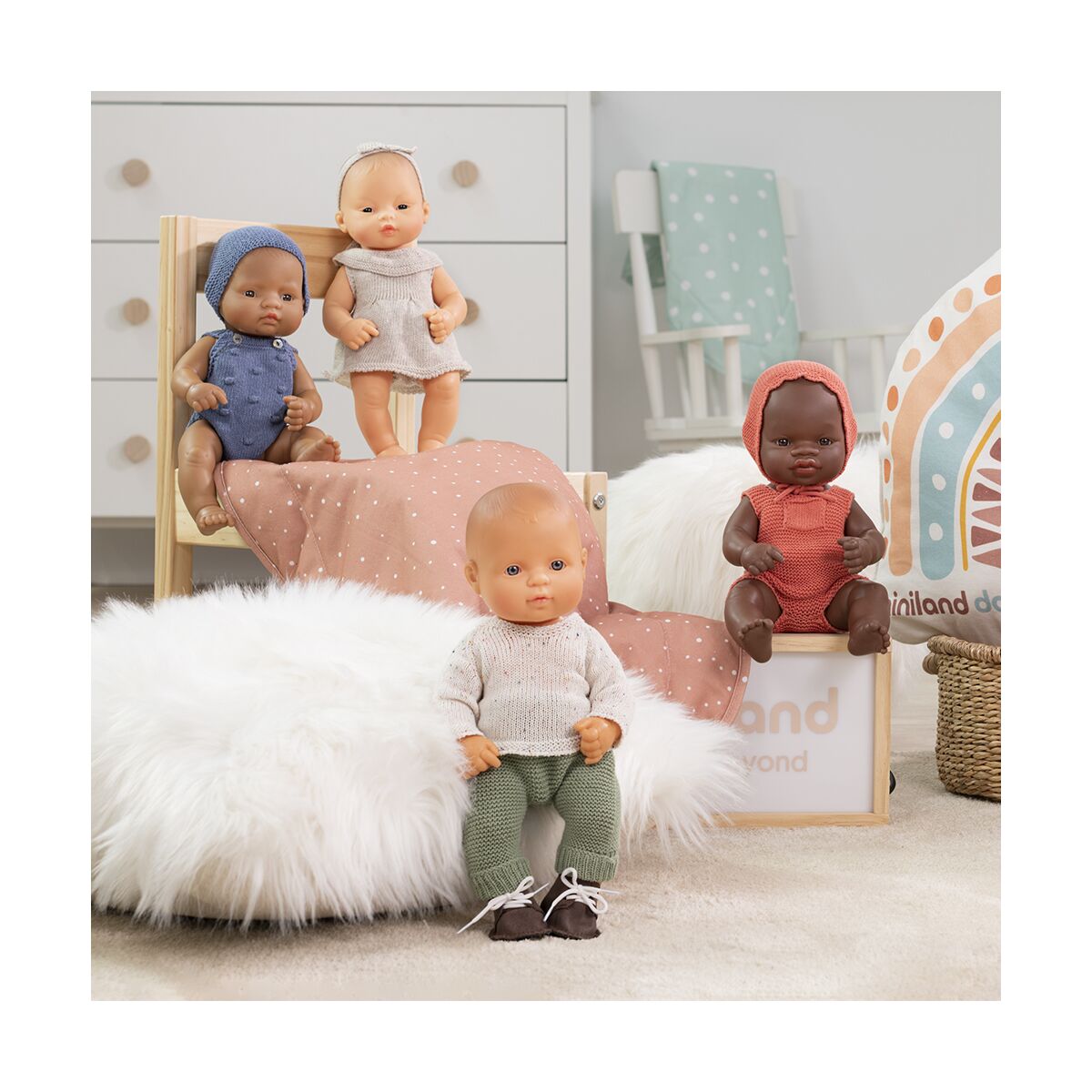 Barboteuse et bonnet en tricot pour poupées de 32c