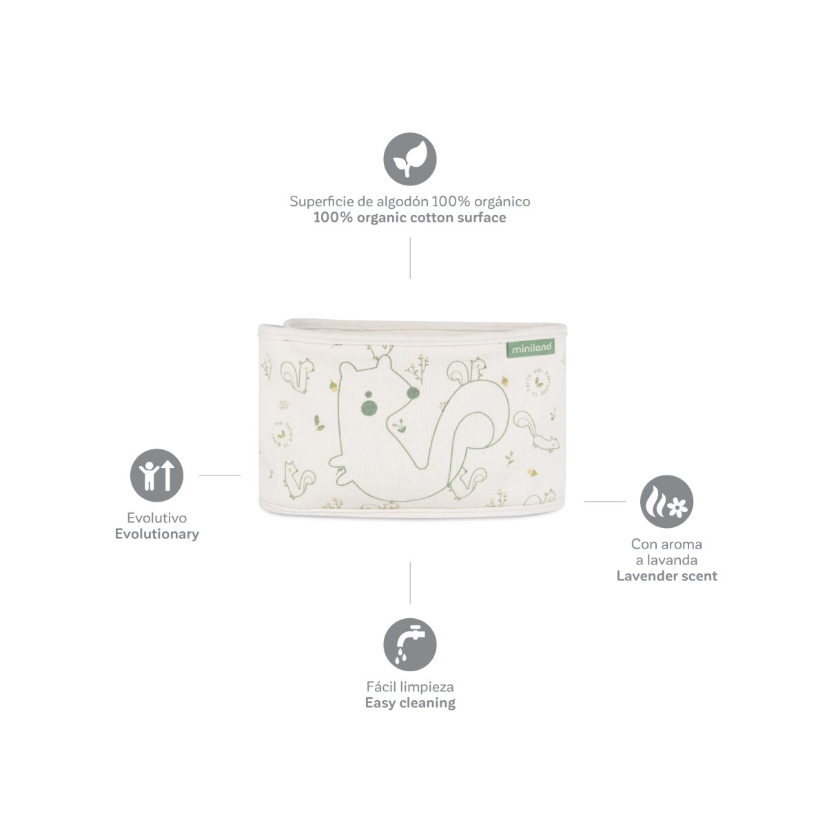 Détendez naturellement votre bébéAvec cette ceinture thermique aux graines, vous pouvez détendre votre bébégrâce àla combinaison de chaleur et du parfum de lavande.Coton 100 % biologiqueAvec un design naturel et amusant, cette ceinture est fabriquée en coton 100 % biologique, ce qui lui confère un toucher très doux et confortable et la rend idéale pour la peau délicate de bébé.Sac extractible de graines d’origine naturelleÀl'intérieur, vous trouverez un sachet amovible rempli de graines naturelles de millet et de lavande qui apportent un arôme agréable et relaxant. Vous pouvez le retirer pour le chauffer au micro-ondes indépendamment.Ceinture ergonomique adaptée au corps de votre bébéEn plus de sa taille réduite, elle s'adapte aux différentes étapes de la croissance de votre bébégrâce àune fermeture réglable avec bande d'étanchéitéde contact.Facile àutiliser et nettoyerVous pourrez la laver en machine max. à30 °C, grâce àsa matière et àl'extraction facile du sac de graines àl'intérieur.