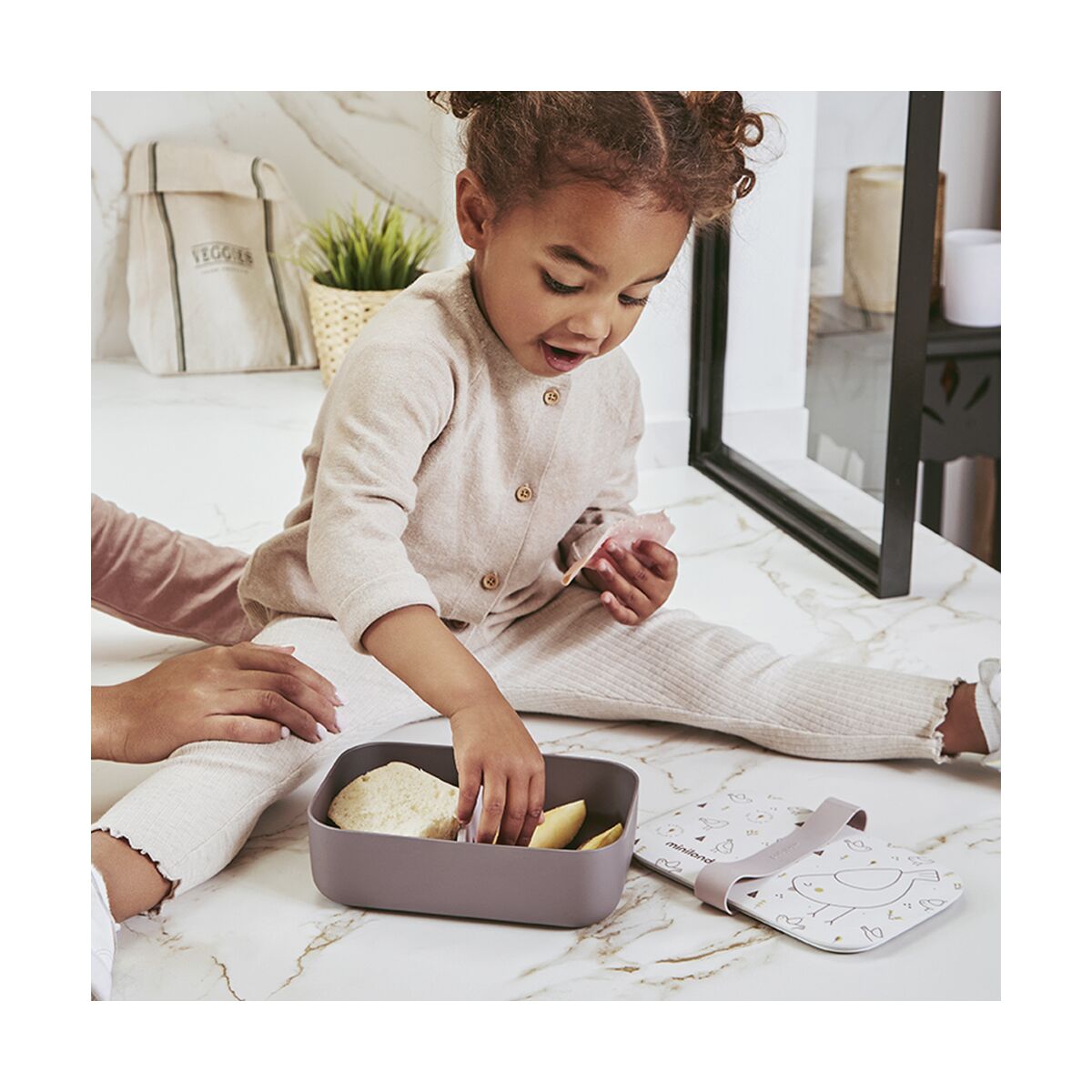 La nourriture la plus délicieuse dans le récipient appropriéCette boîte àsandwich est idéale pour emporter partout les repas et les goûters de votre bébé. Ces boîtes peuvent être utilisées pour tous ses déjeuners et goûters, et elles maintiennent la nourriture fraîche comme si elle venait d’être cuisinée. Chaque aliment àsa place Ils sont dimensionnés pour conserver séparément deux types différents d’aliments en deux portions, le séparateur est amovible en silicone. Le séparateur étant facilement amovible et vous permet d’adapter la taille de chaque compartiment àvos besoins, pour ajouter plus ou moins de nourriture de chaque côté. Fermeture hermétiqueSon couvercle est équipéd’une bande de silicone pour une fermeture totalement hermétique, qui évite les fuites involontaires et améliore la conservation des aliments, tout en préservant les odeurs et les saveurs. Design avec motifs naturels Ce récipient est disponible en deux différents modèles avec des dessins inspirés de la nature : une sympathique grenouille et un adorable poussin. Apte pour le lave-vaissellePeut être lavéau lave-vaisselle.