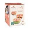 Récipients en verre pour les aliments des plus délicats de la maison Ce set eco-friendly, idéal pour stocker et transporter les plats maison du bébé, est composéde 3 récipients de 200 ml en verre, matériel résistant et durable qui, comme il est entièrement transparent permet de voir parfaitement le contenu.Valve de fermeture hermétique La valve d’ouverture et fermeture du bouchon garantit une meilleure conservation des aliments et évites des fuites non désirées. De plus, le joint en silicone permet de préserver les saveurs et les arômes.Adaptés au micro-ondes, lave-vaisselle, congélateur et même au four Ils sont adaptés au lave-vaisselle et au congélateur. De plus, la base peut être utilisée pour réchauffer des aliments au micro-ondes et même au four puisqu’ils sont résistants aux températures extrêmes et aux chocs thermiques.Facile ànettoyerGrâce àla superficie singulière du verre, ces récipients sont faciles ànettoyer. Sûrs et hygiéniques.Sans bisphénolRécipients 100% sans BPA.