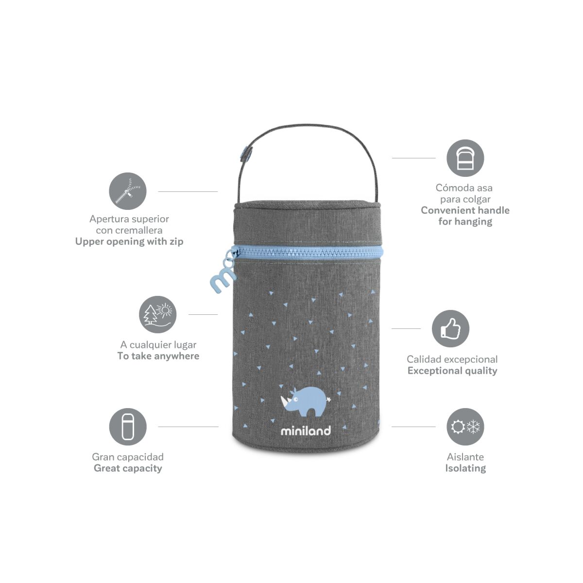 Les parents pourront choisir la taille qui s’adapte le mieux à chaque thermos et l’emporter partout. Parfait pour voyager ou pour laisser le bébé en garde. De plus, le sac possède une anse pour le pendre à la poussette pour plus de confort.