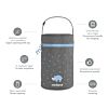Un sac de transport pour les thermos de bouillies et d'aliments solides pour bébés allant jusqu'à 700 ml, vous offrant une protection supplémentaire contre les chocs et les changements de température. Sa capacité est idéale pour transporter la nourriture préparée de bébé ainsi que son bavoir ou ses couverts préférés. Il est orné de jolis motifs bleus et possède une poignée à bouton qui vous permet de le transporter partout et de l'adapter à votre poussette.