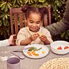 Divertimento per i piùpiccoli! Completo set pappa con allegre fantasie a rane per rendere divertente il momento del pranzo. Il set pappa piùcompleto Il set di 5 pezzi si compone di un piatto piano per alimenti solidi; una ciotola per le pappe; una forchetta e un cucchiaio dalle dimensioni ideali per le prime pappe del bambino e un bicchiere. Per imparare a mangiare da soli. Grazie alle studiate dimensioni, la forchetta e il cucchiaio aiuteranno i piccoli della casa a mangiare in modo autonomo. Inoltre, bevendo dal loro bicchiere, aperto e dalle dimensioni studiate, impareranno a sostenerlo e a bere senza bagnarsi. Si completa con gli altri pezzi del set per rendere il pranzo un momento divertente. Materiali naturali Fabbricato con materiali 100% naturali e durevoli, questo set leggero ma robusto èideale per insegnare ai piùpiccoli l’importanza della cura dell’ambiente e del rispetto del mondo in cui cresceranno. Idoneo per lavastoviglieTutti i pezzi di questo set possono essere lavati comodamente in lavastoviglie.