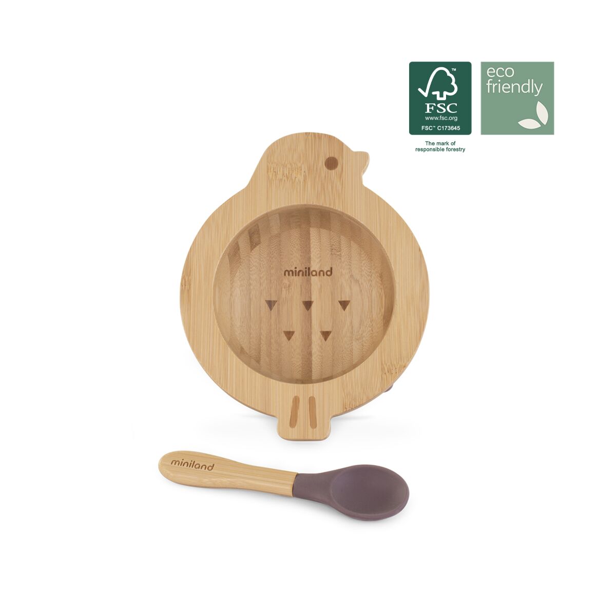 Per vivere la magica esperienza del pranzo Questo set si compone di una ciotola e un cucchiaio in legno di bambù, un materiale naturale e sostenibile, per aiutare i piùpiccoli ad imparare a mangiare da soli e a rispettare la natura. La punta del cucchiaio èin silicone, delicata quindi sulle gengive dei piccoli della casa, e li aiuta a mangiare in modo autonomo con la massima sicurezza.100% naturale e sostenibile La ciotola e il cucchiaio sono in 100% legno di bambùe la ventosa e la punta del cucchiaio in silicone di grado alimentare.Perfetto per BLW! La ciotola èdotata di una ventosa in silicone nella parte inferiore per appoggiare il piatto sulla superficie del seggiolone o sul tavolo ed evitare che cada. Permette di addentrarsi nel mondo dell’alimentazione autoregolata o BLW perchéil bambino non potràfar cadere il piatto mentre mangia da solo.Disegno ispirato alla natura Fabbricato in legno naturale e sostenibile, aiuta i piùpiccoli ad imparare a mangiare in modo divertente e a rispettare l’ambiente. Inoltre, èdisponibile in due fantasie diverse: rana e pulcino.