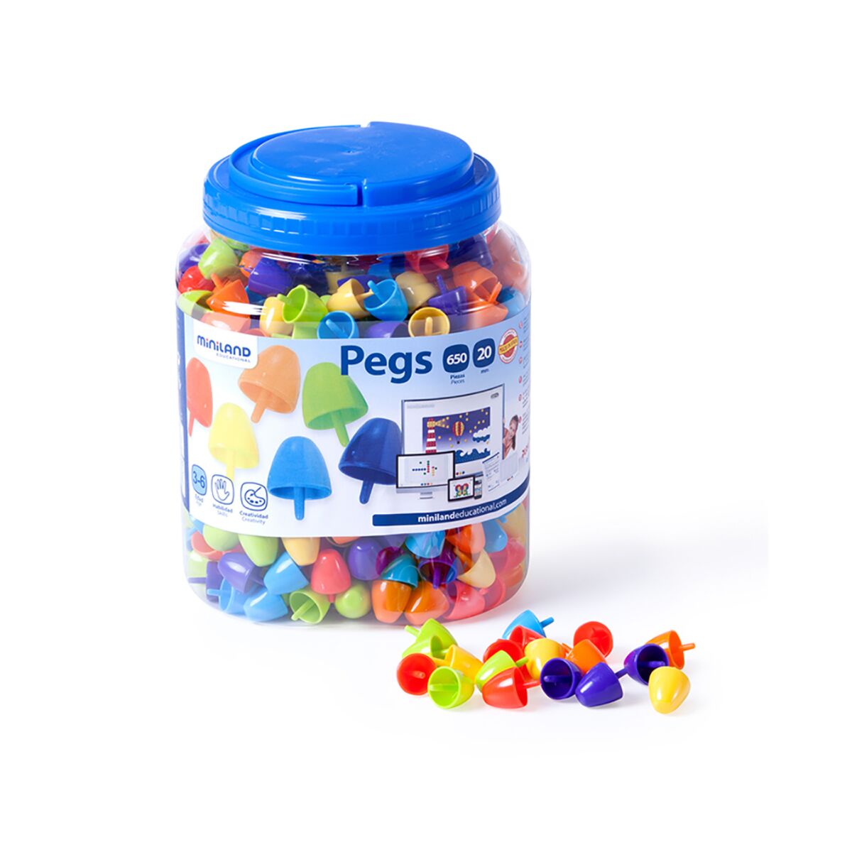 | Description | To create fun patterns in the matching trays. Children can develop fine motor skills and hand-eye coordination by holding the pegs. They build attention and stimulate creativity. They learn to associate colors, as well as basic spatial concepts. In addition to this, with our miniland teach&play educational platform you can combine this product with free resources and games to broaden the educational experience. |