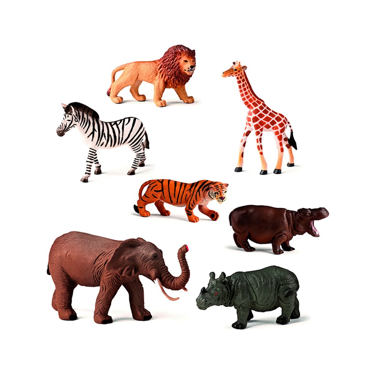 Elephant, tiger, rhino, hippo, zebra, lion, giraffe & 1 teaching guide.